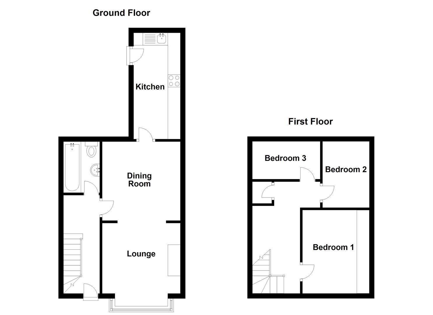 The entrance hall features varnished strip wood flooring, which continues into the bright lounge and dining area with bay window. The kitchen offers a range of high and low level units, a single drainer stainless steel sink with mixer tap, four ring ceramic hob, space for a cooker and plumbing for a washing machine, with a PVC door leading to the rear yard.