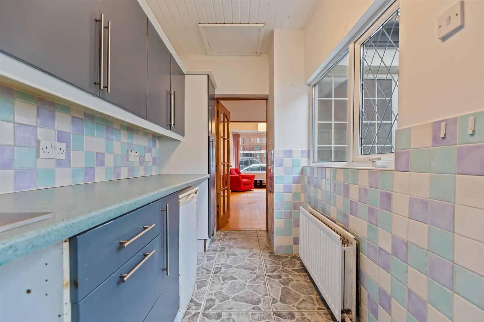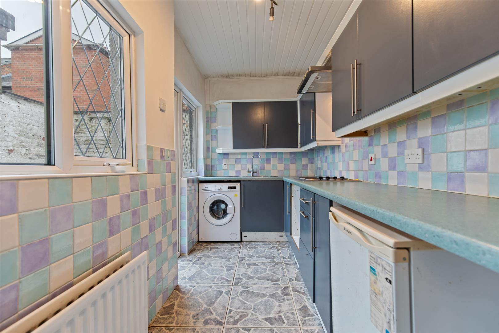 Range of high and low level units, single drainer stainless steel sink with mixer tap, four ring ceramic hob, space for cooker, plumbed for washing machine and PVC door to rear yard.