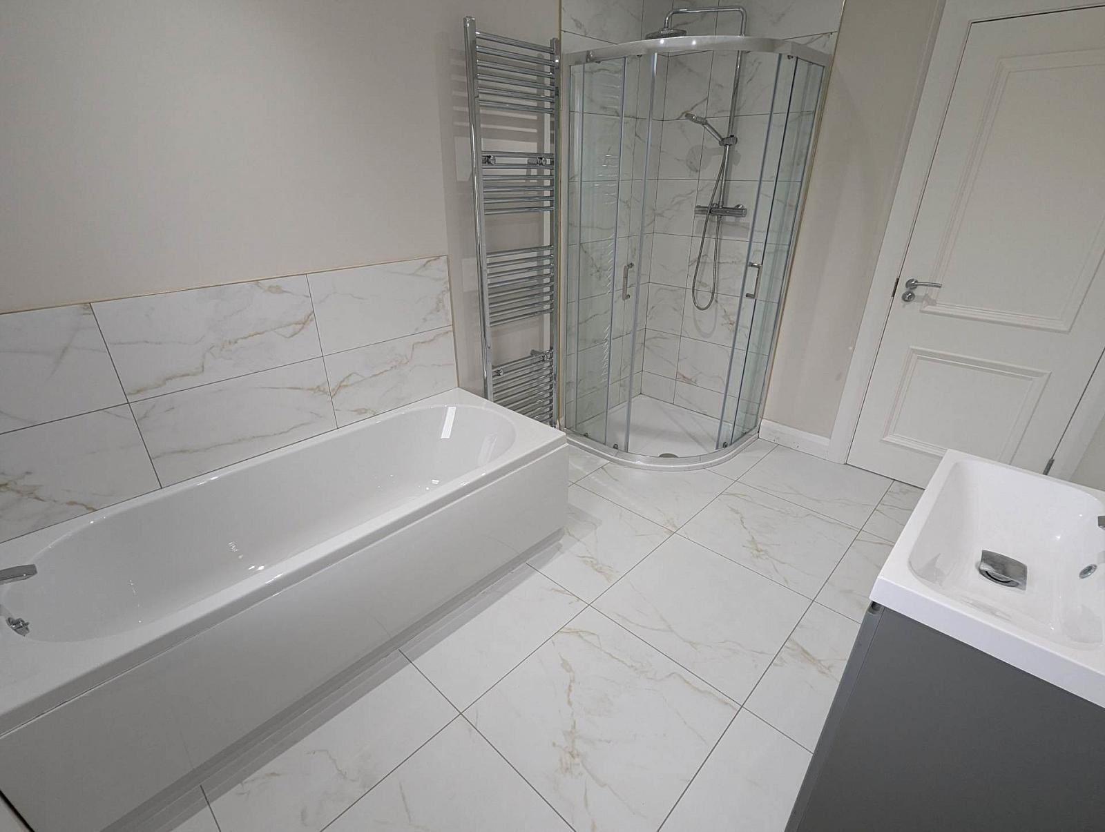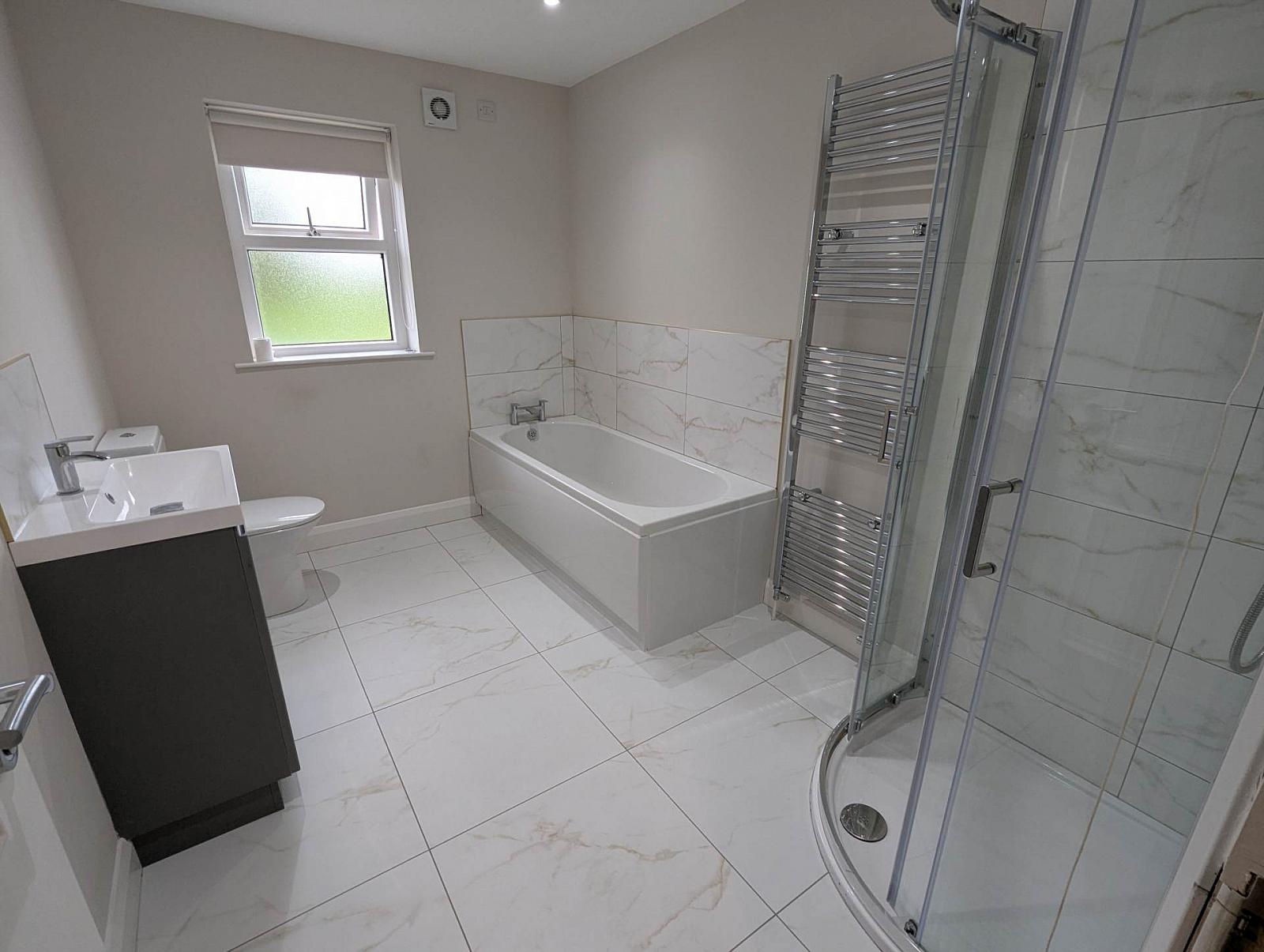 Upstairs, there are two large, bright bedrooms, both with spacious built-in walk-in wardrobes, along with a main bathroom featuring a separate bath and shower.