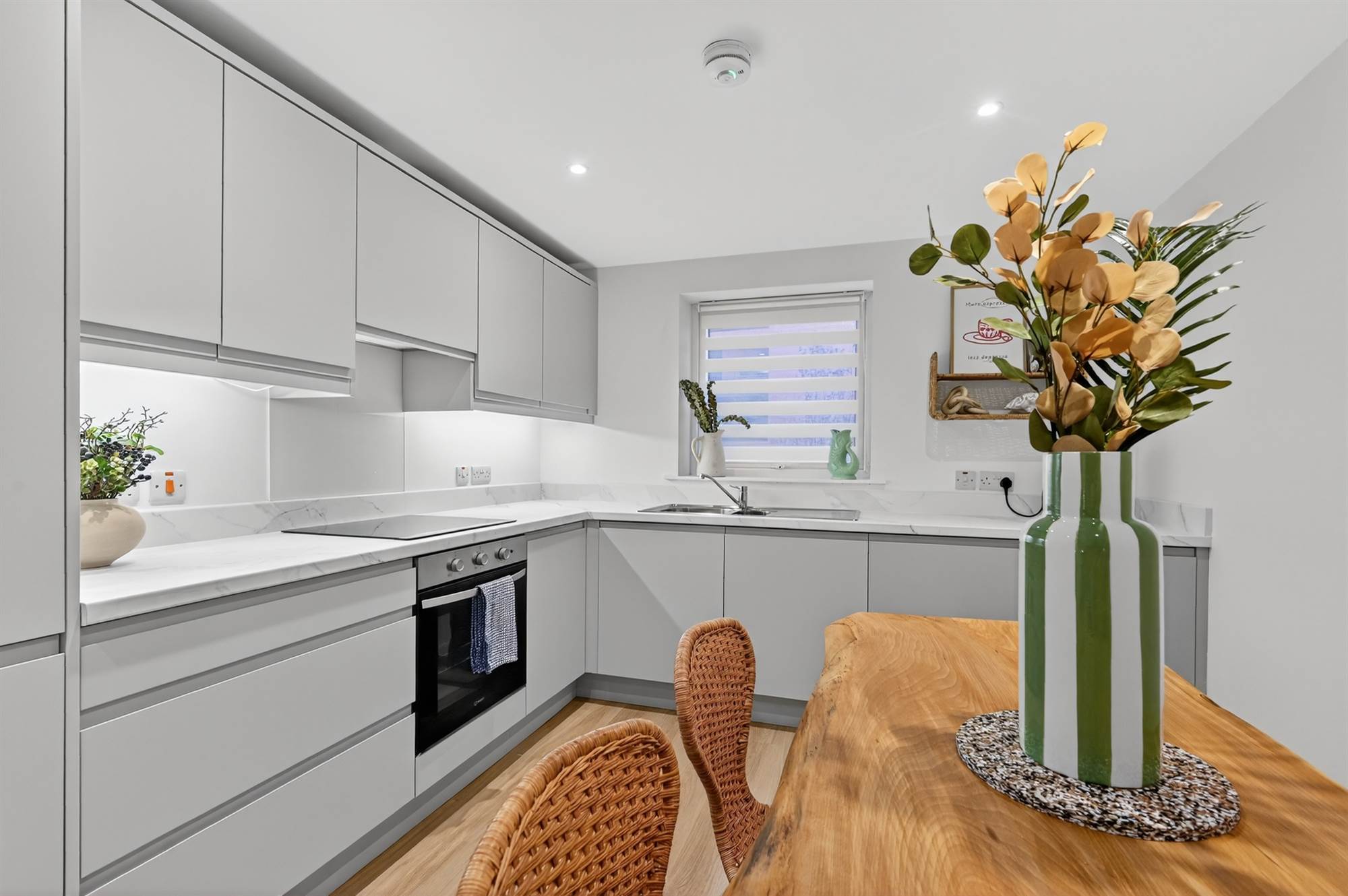 Integrated appliances to include electric oven, hob, extractor fan dishwasher & fridge freezer