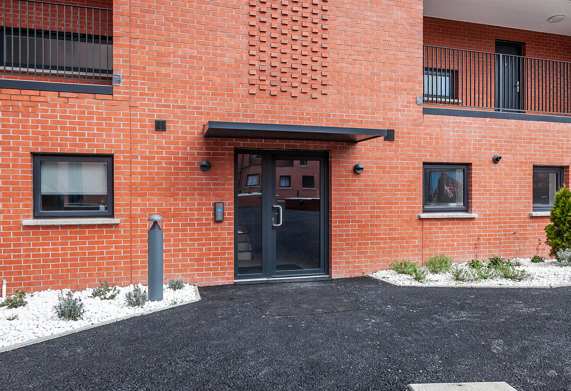 Feature lighting to communal hallway, entrance doors and balconies