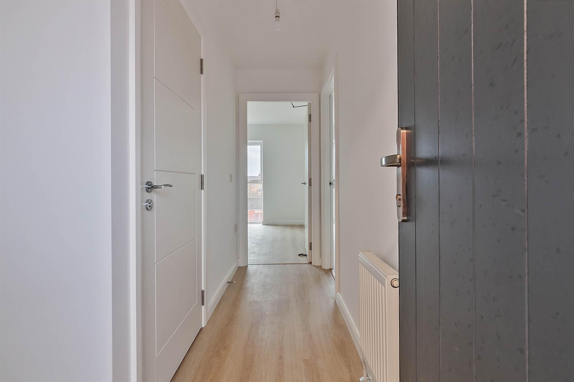 Painted modern panel internal doors with chrome door furniture