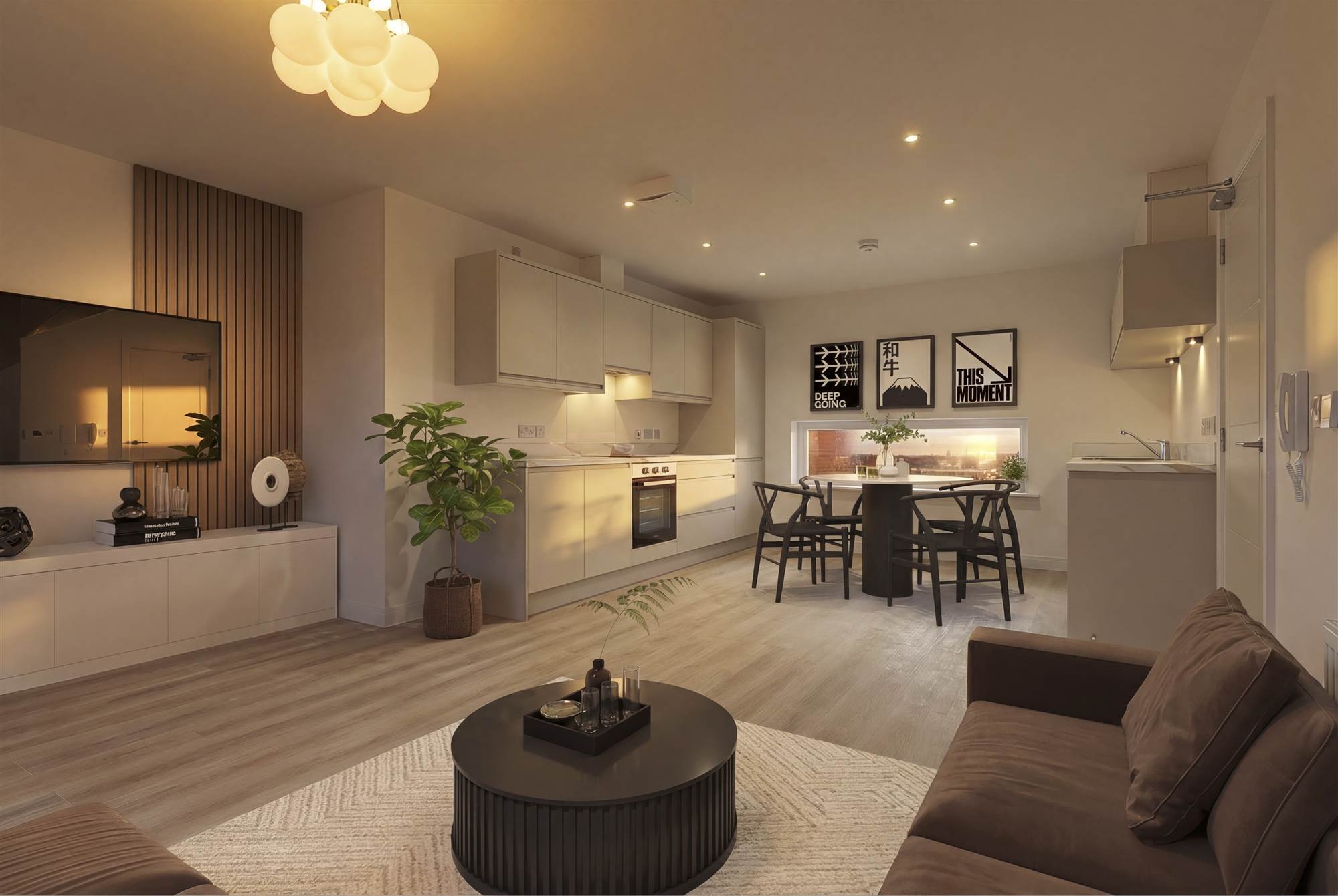 High quality Elka LVT flooring throughout living room, kitchen and bedrooms