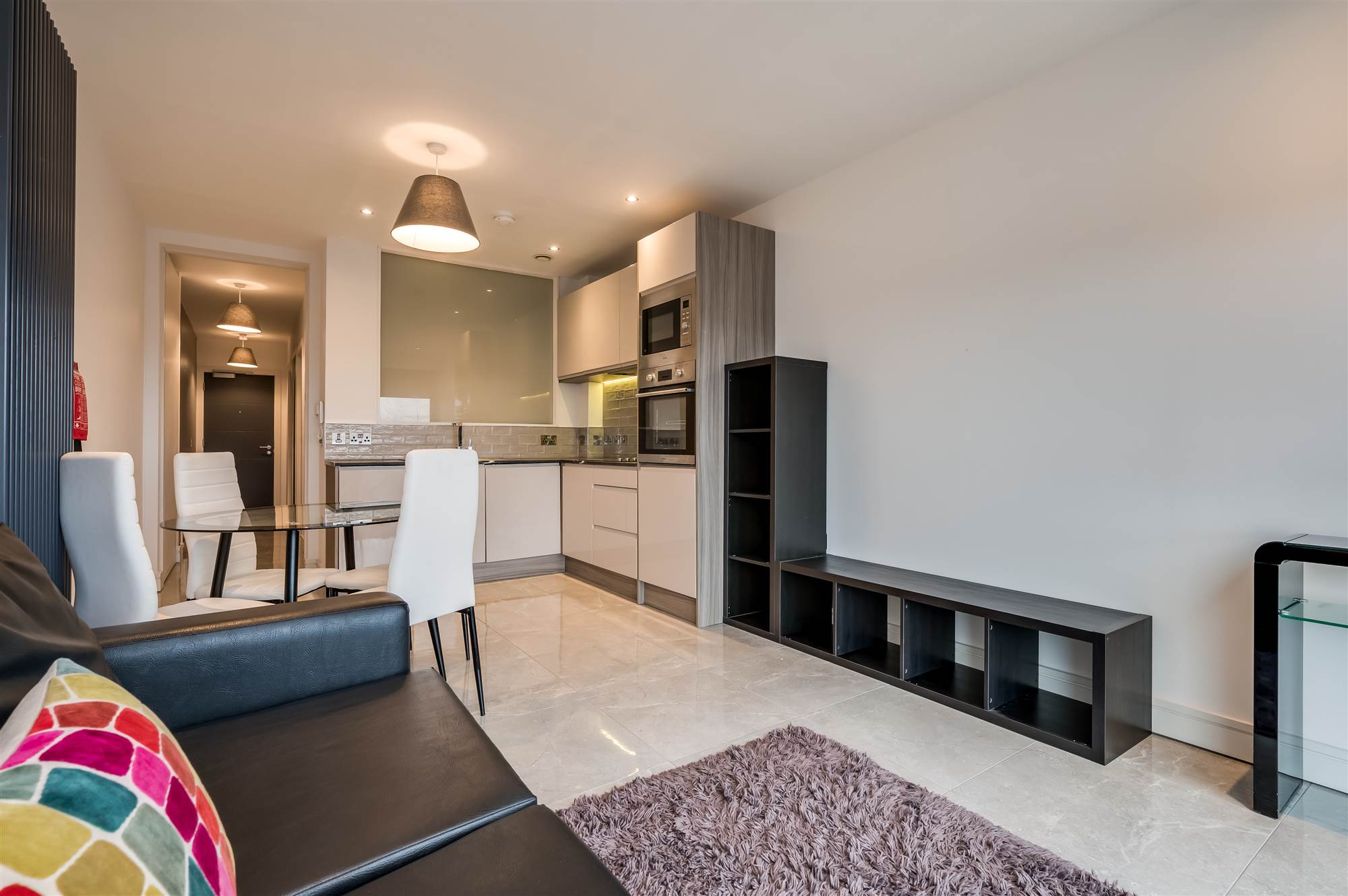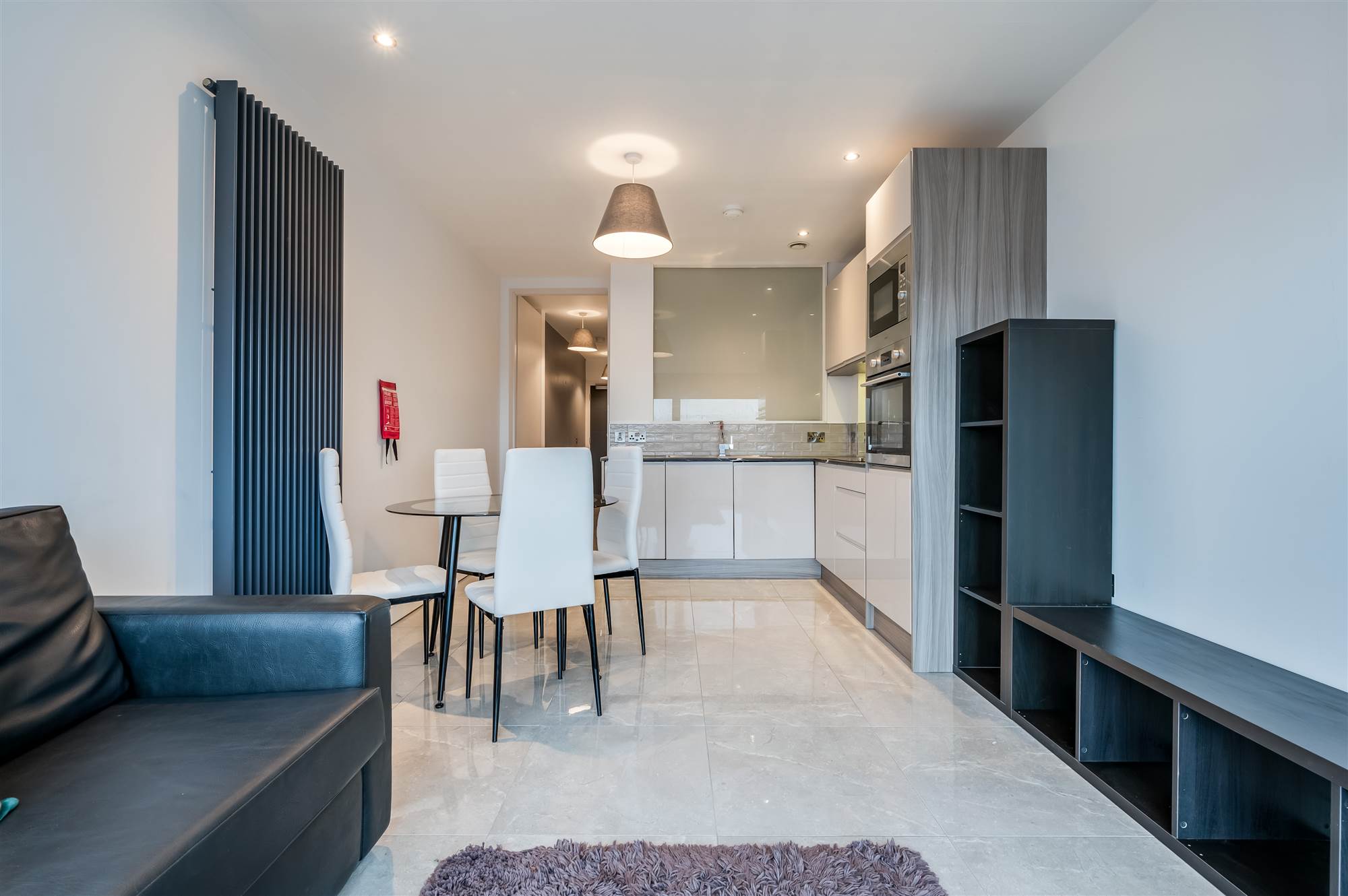 We are offering for sale this modern fifth floor apartment. The property comprises; bright open plan high gloss kitchen units open plan to lounge/dining area, good sized double bedroom and contemporary main bathroom with bath and shower over.