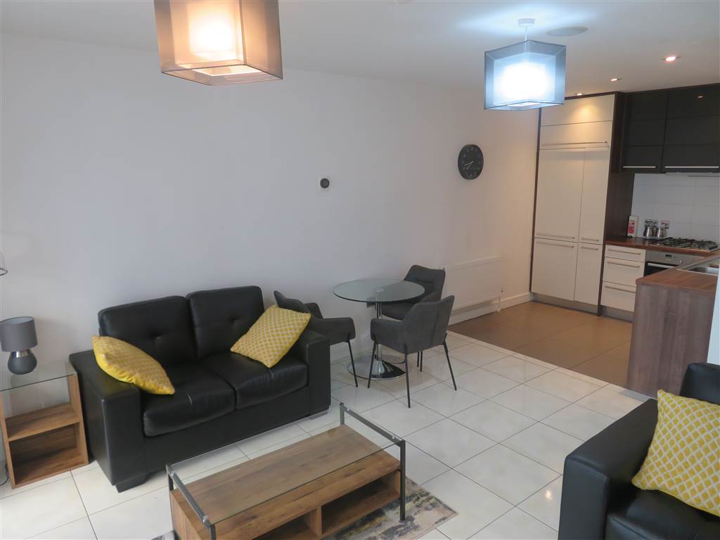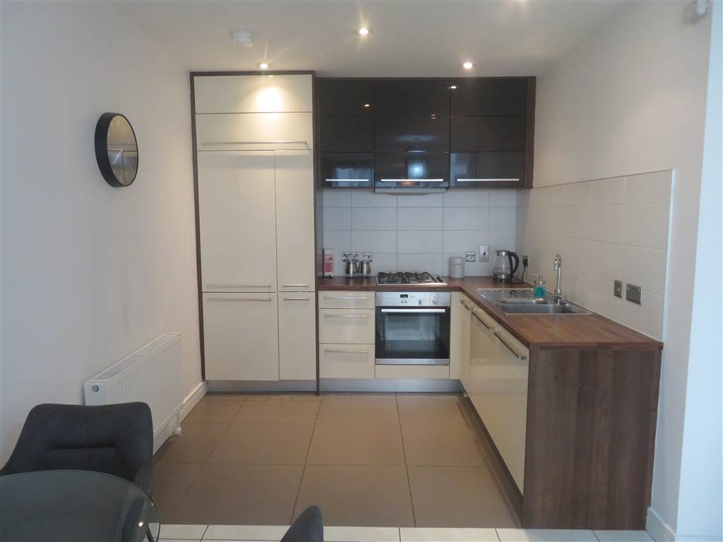This beautifully presented one-bedroom apartment offers modern living at its finest, situated on the fifth floor. The apartment features a high-gloss, fully fitted kitchen complete with a fantastic range of appliances, seamlessly opening into a spacious living and dining area with balcony accessâperfect for relaxing or entertaining.