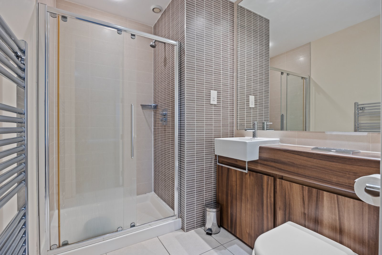 Shower enclosure, WC and wash hand basin