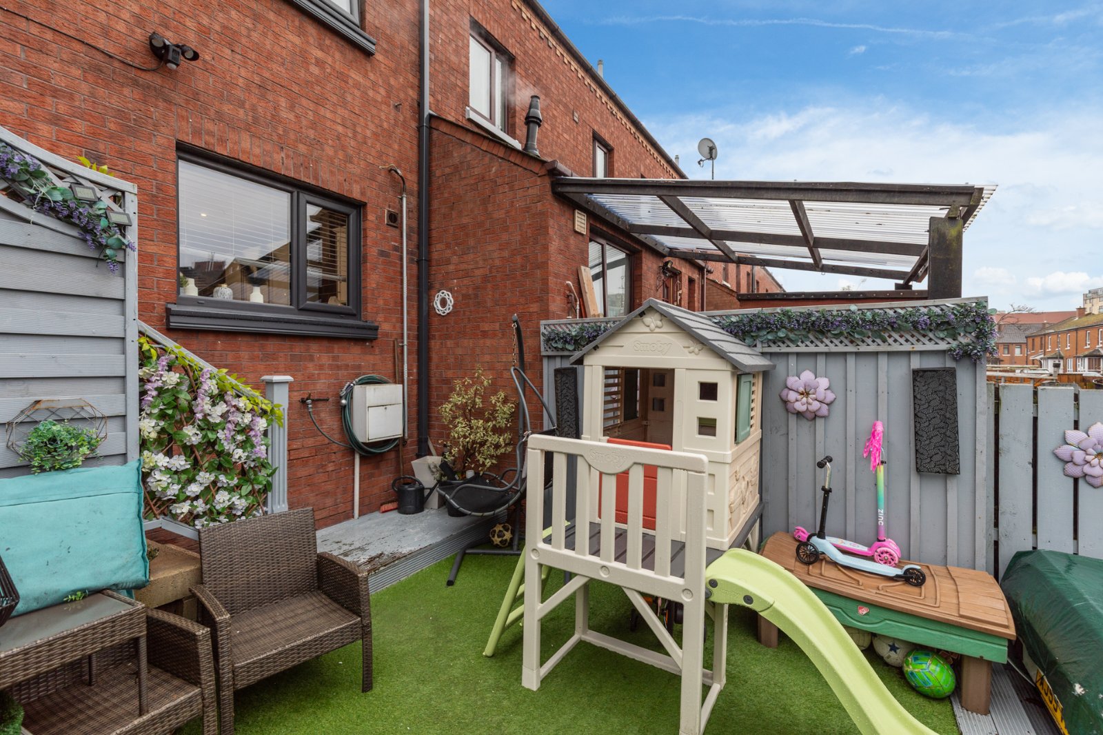 Forecourt and enclosed rear garden with delightful Westerly aspect