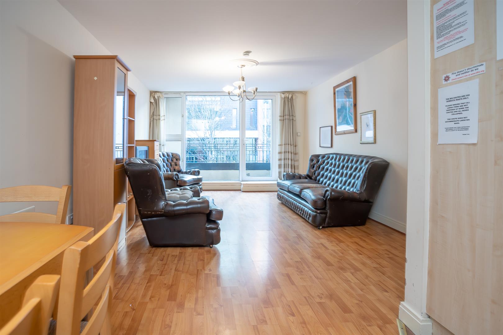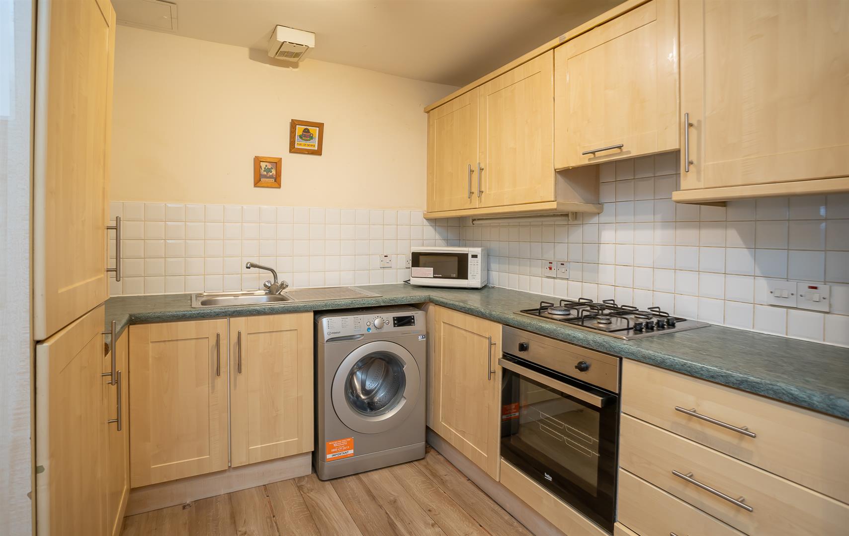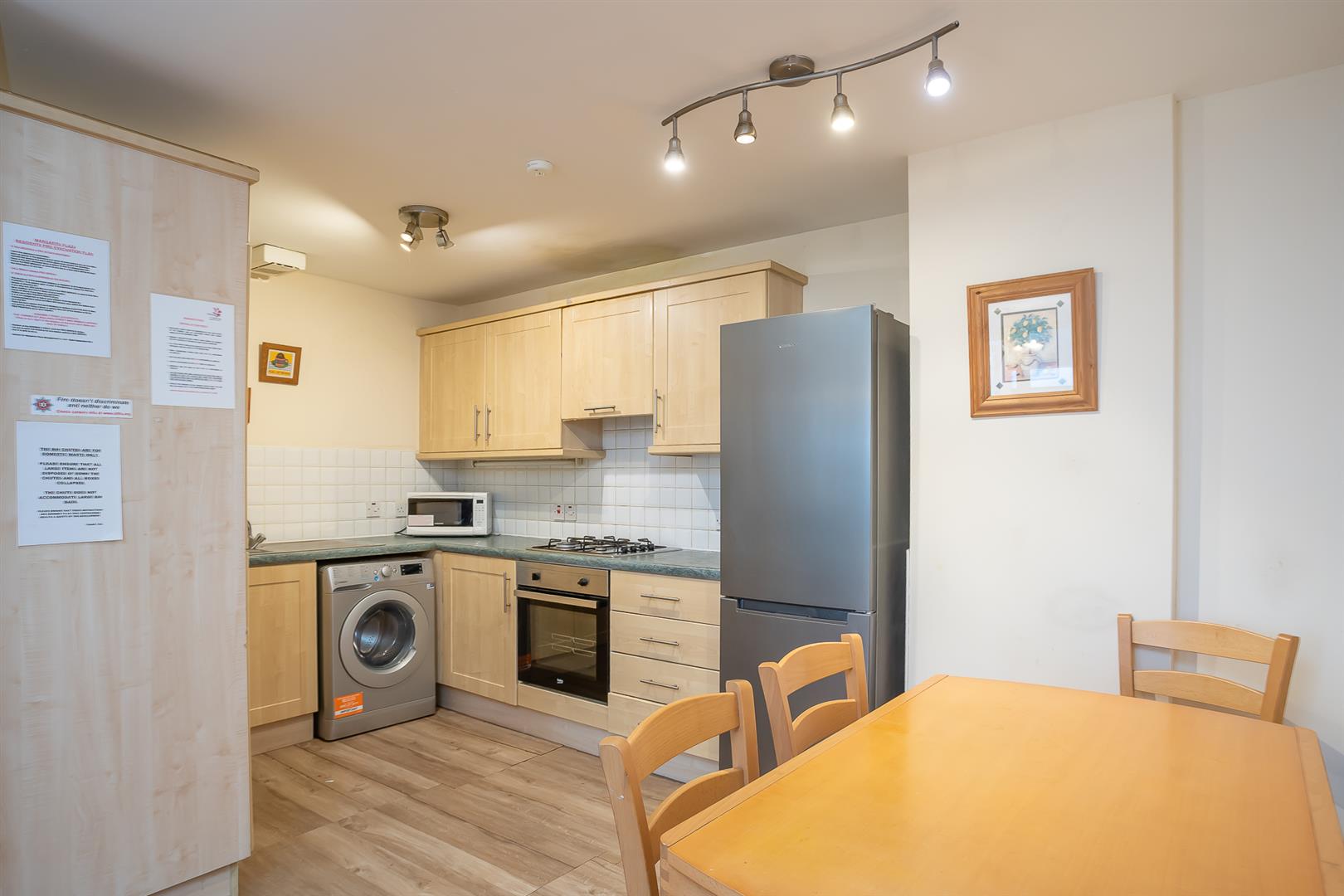 A spacious open plan kitchen, dining and living space with integrated kitchen appliances to include, gas hob with oven, fridge/freezer and direct access to a private balcony overlooking Adelaide Street.