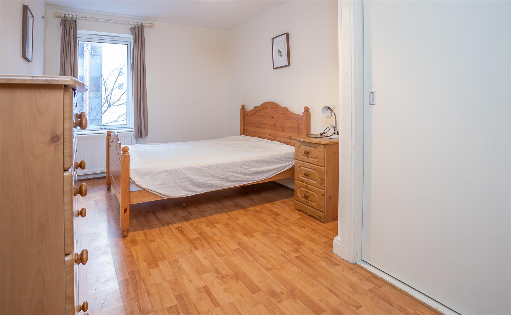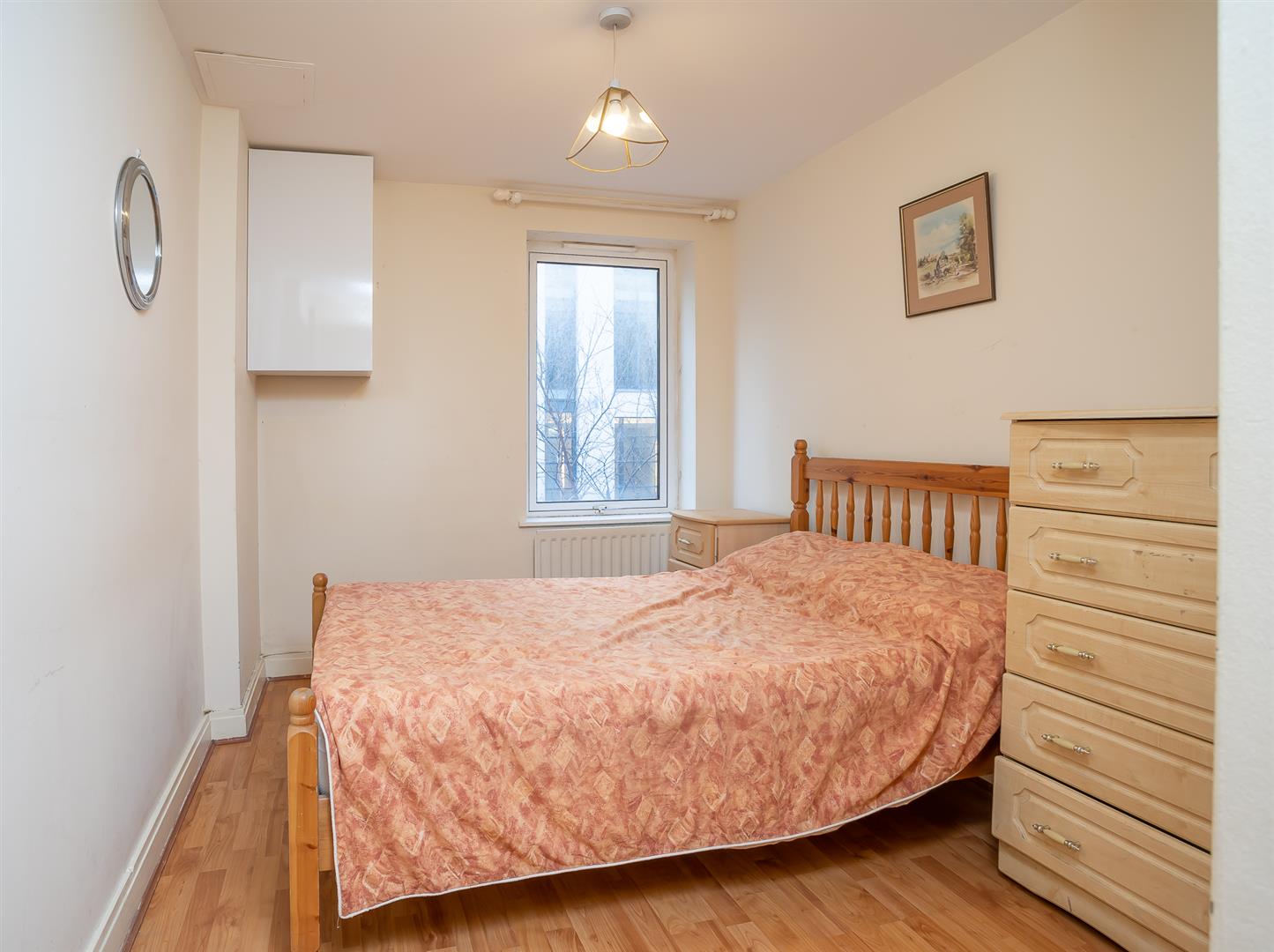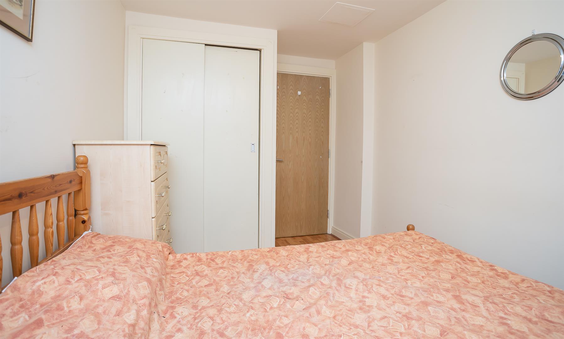 A good size second bedroom with tiled floor and built in wardrobes housing the gas boiler.