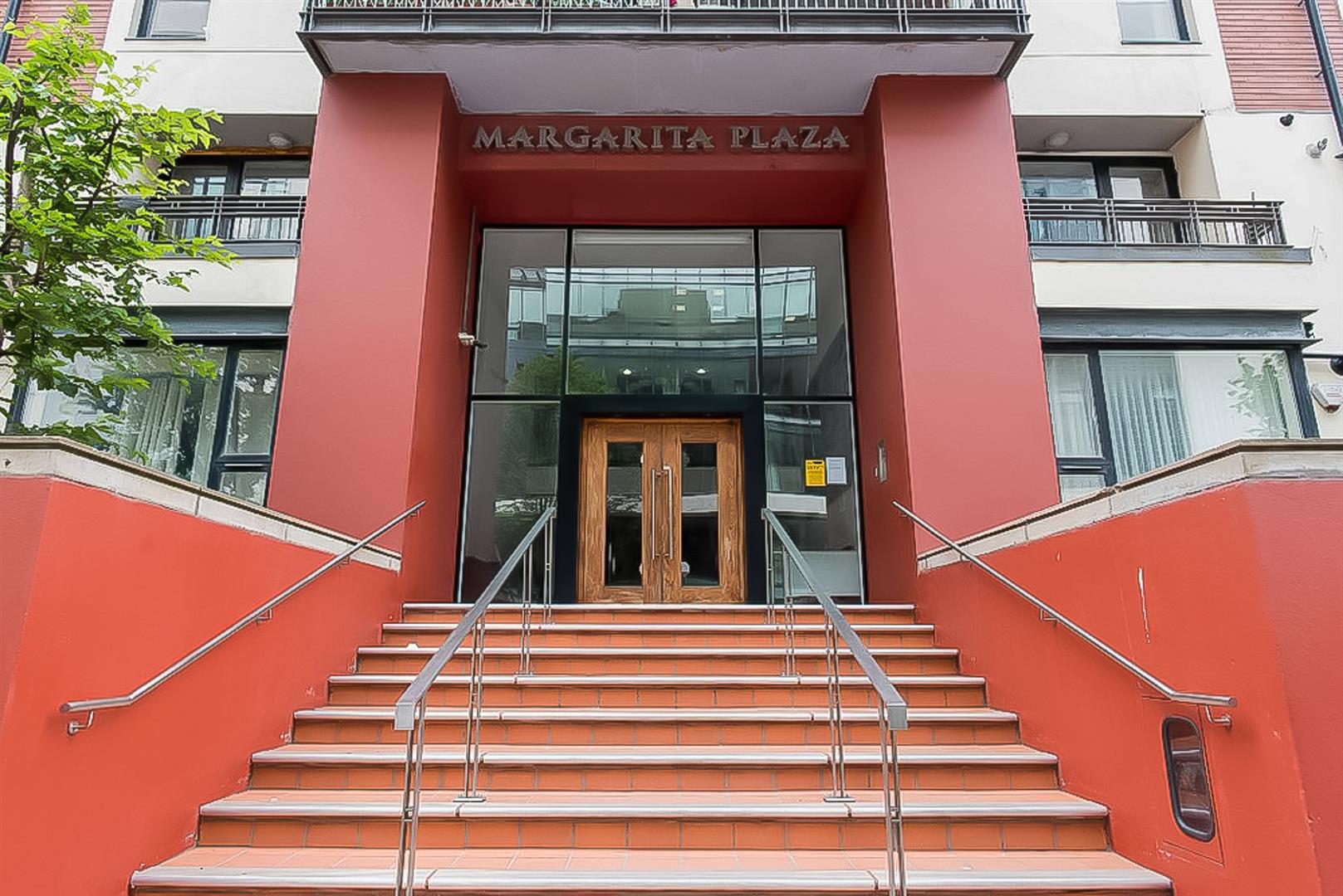 HMK Property is delighted to introduce Apartment 204 Margarita Plaza to the sales market. This fantastic second floor apartment is located in the heart of Belfast City Centre, a short stroll from the Belfast City Hall, and a host of restaurants, cafés and shops. This spacious apartment consists of a bright entrance entrance hall with a large built in storage, perfect for utility goods, leading onto an open plan living room to dining room and kitchen with private balcony overlooking Adelaide Street. The kitchen has a good range of high and low level units, plumbed for white goods, a gas hob with oven under and extractor hood, and tiled floor under the existing vinyl in the kitchen. There is a family bathroom with white suite and shower over bath, low flush W/C and pedestal sink. Apartment 204. has two excellent bedrooms, both with slide-robes, and the master has an en-suite shower room. Margarita Plaza is popular with first time buyers, and investors, with strong demand for quality rentals so close to the city centre. Apt 204 benefits from a gated parking space and lift access. To arrange a viewing of this second floor city centre apartment, contact HMK Property on 028 90397712.