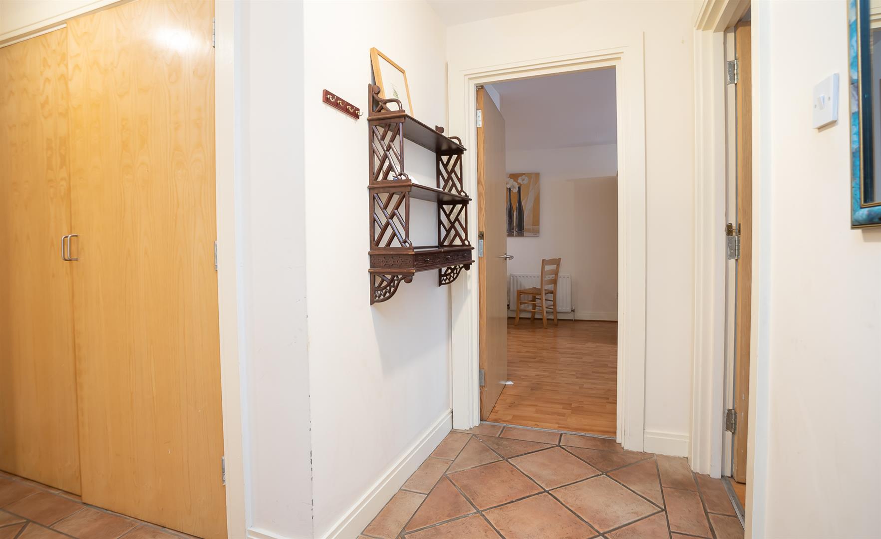 A bright entrance hall with tile flooring, large storage cupboard leading to...