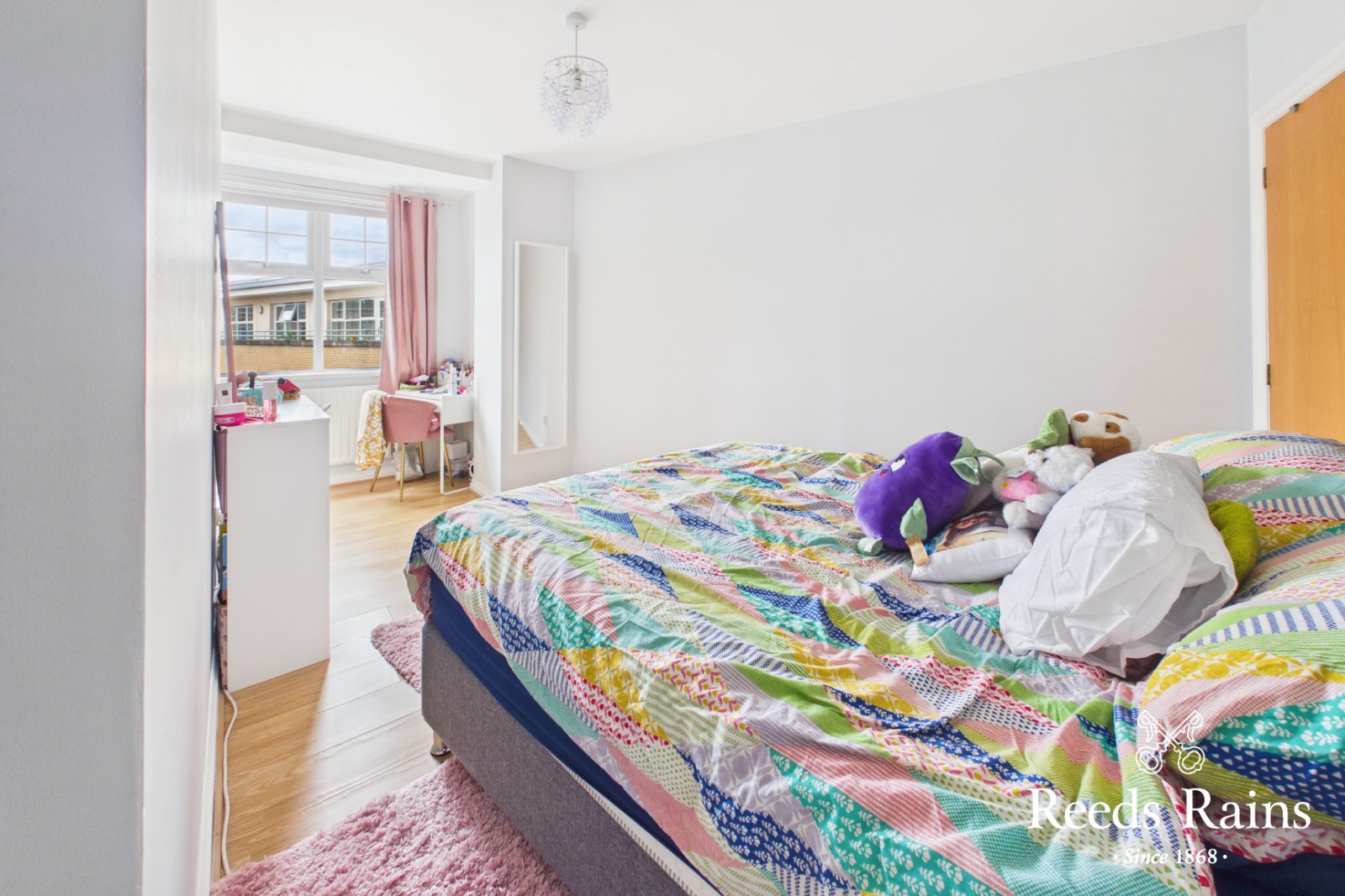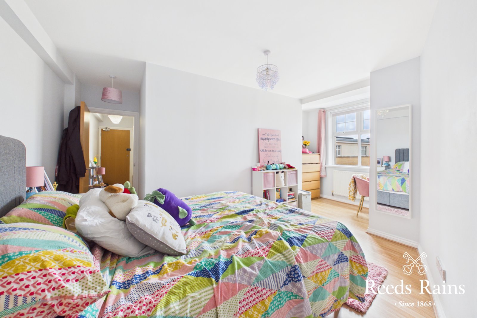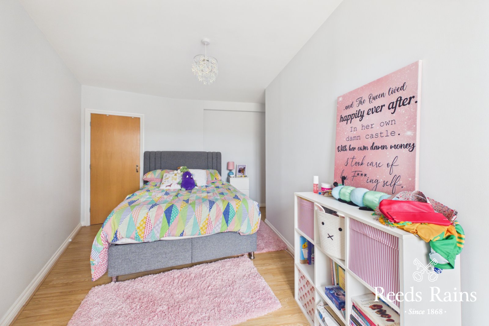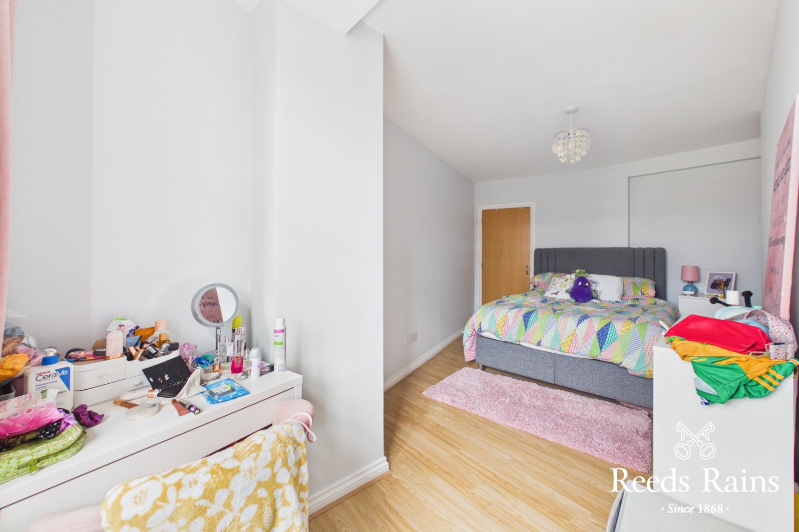 Spacious bedroom with built in wardrobe, laminate wooden flooring