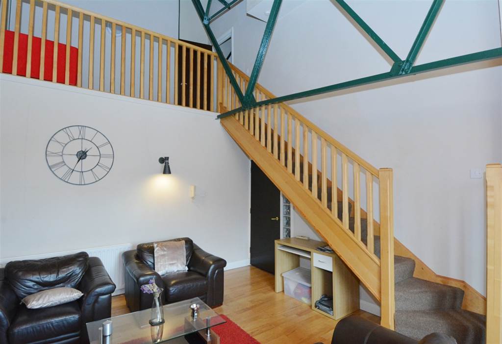The property comprises a spacious living room with high ceilings and exposed brick walls, a separate modern kitchen with breakfast bar, two spacious bedrooms with built in wardrobes and a well presented, tiled, bathroom with double shower and white suites. The property also benefits from a secure, allocated car parking space.