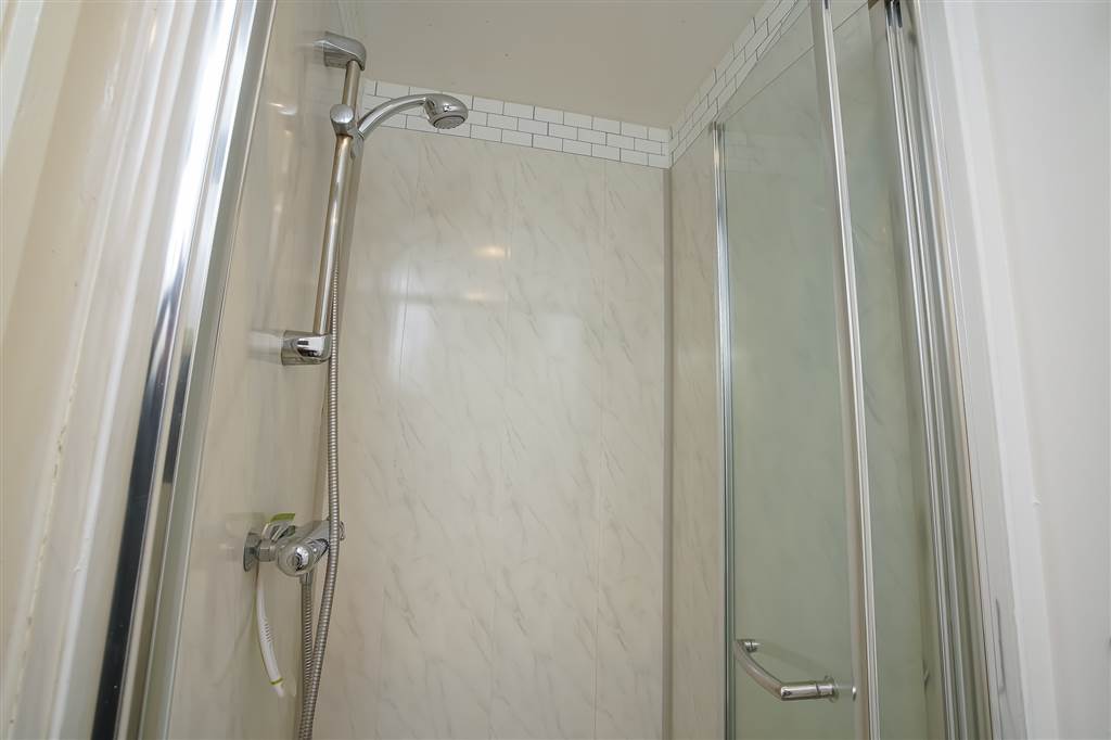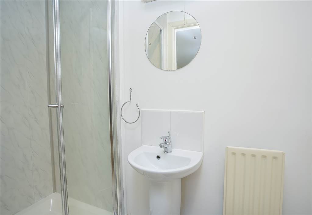 Three piece suite with shower, wash hand basin and W/C. Recessed lighting and laminate flooring.