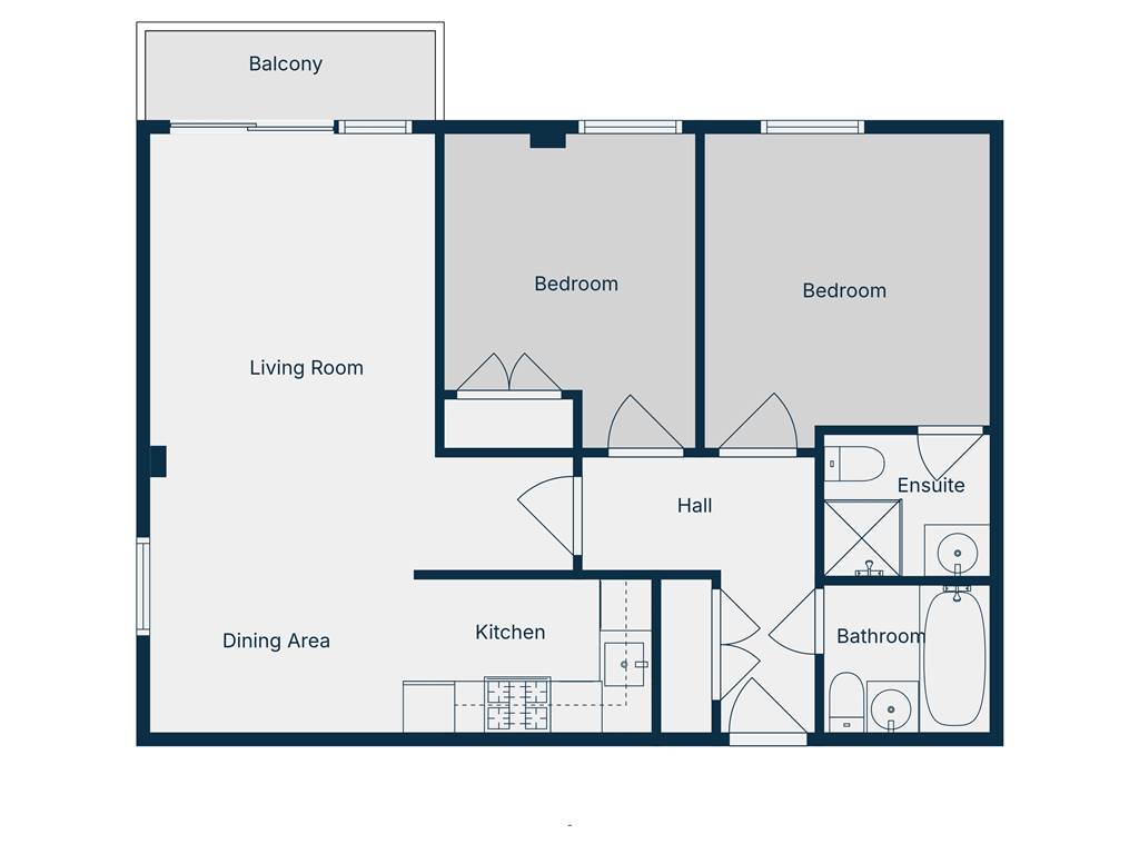 Offering bright and spacious accomodation throughout. Comprising two double bedrooms, master with en-suite and open-plan kitchen and living space. The apartment enjoys fantastic storage, a sun-trap balcony and a family bathroom with three piece suite.
