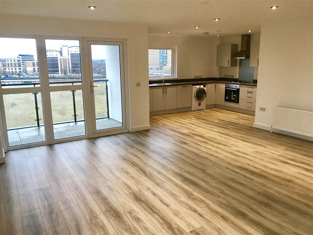 The property is located on the fourth floor and comprises an open plan living/kitchen with dining area, a good sized bedroom and a bathroom suite.
