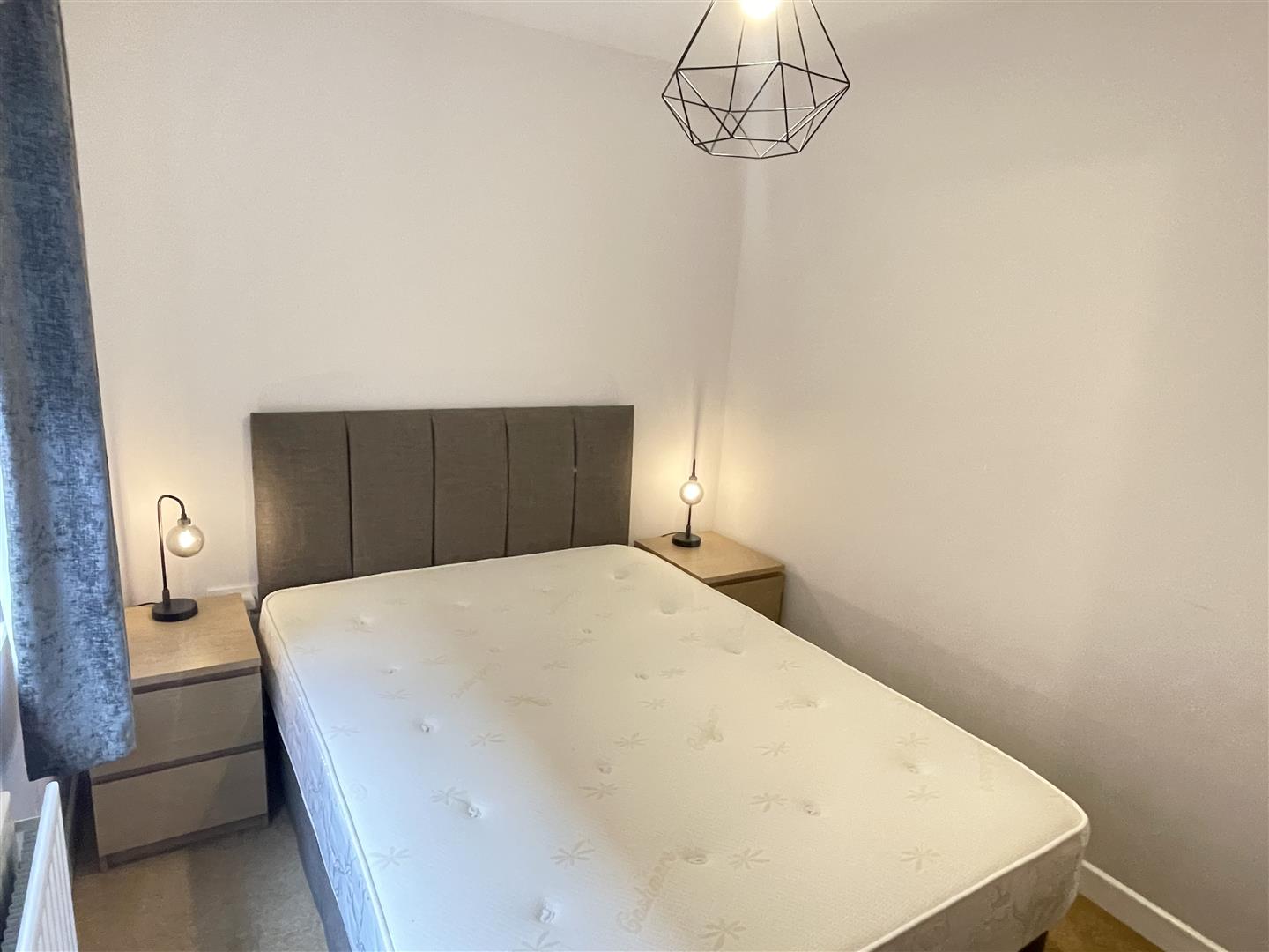 The accommodation comprises a bright open-plan living and dining area, a modern fitted kitchen, two well-proportioned bedrooms, and a white bathroom suite.