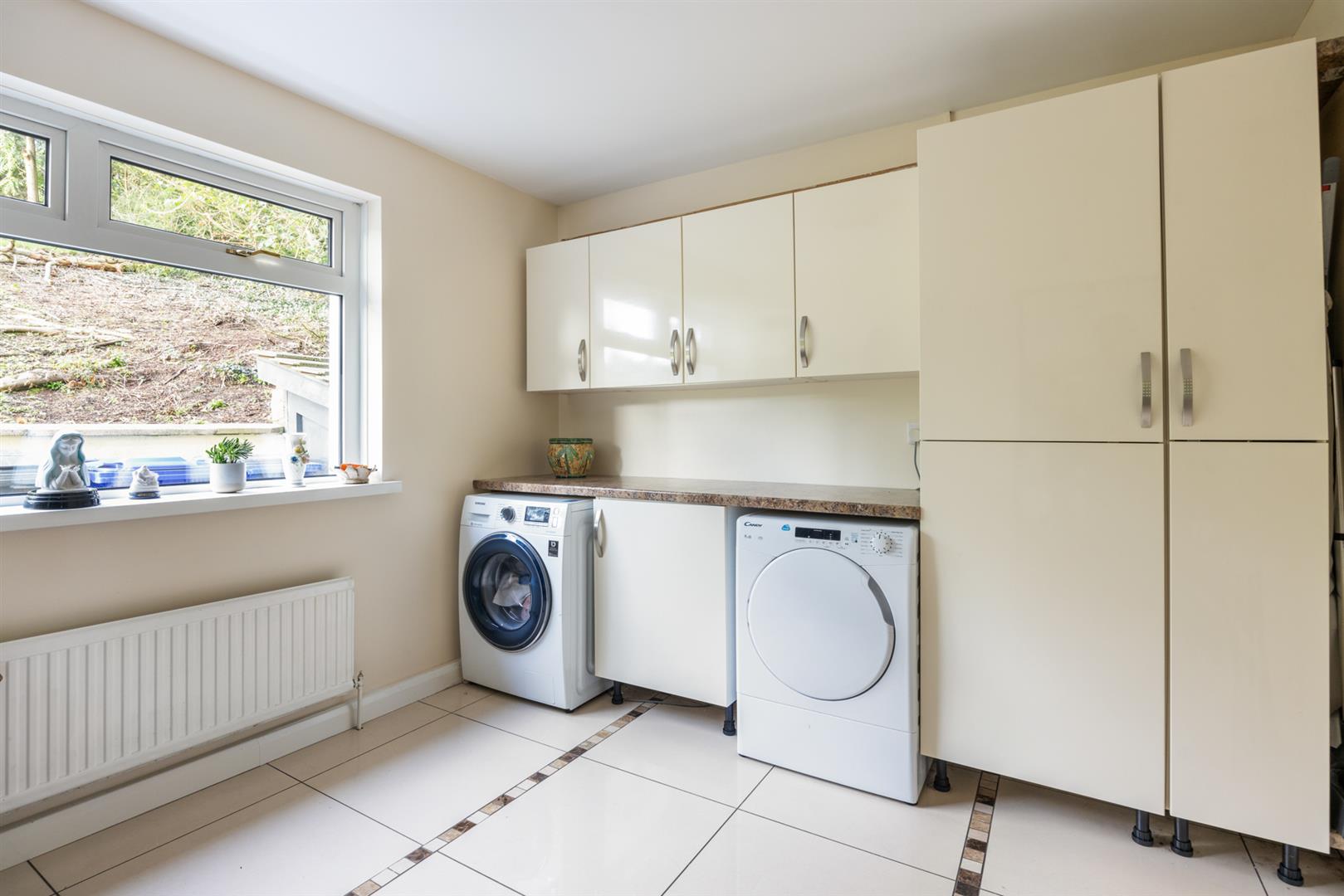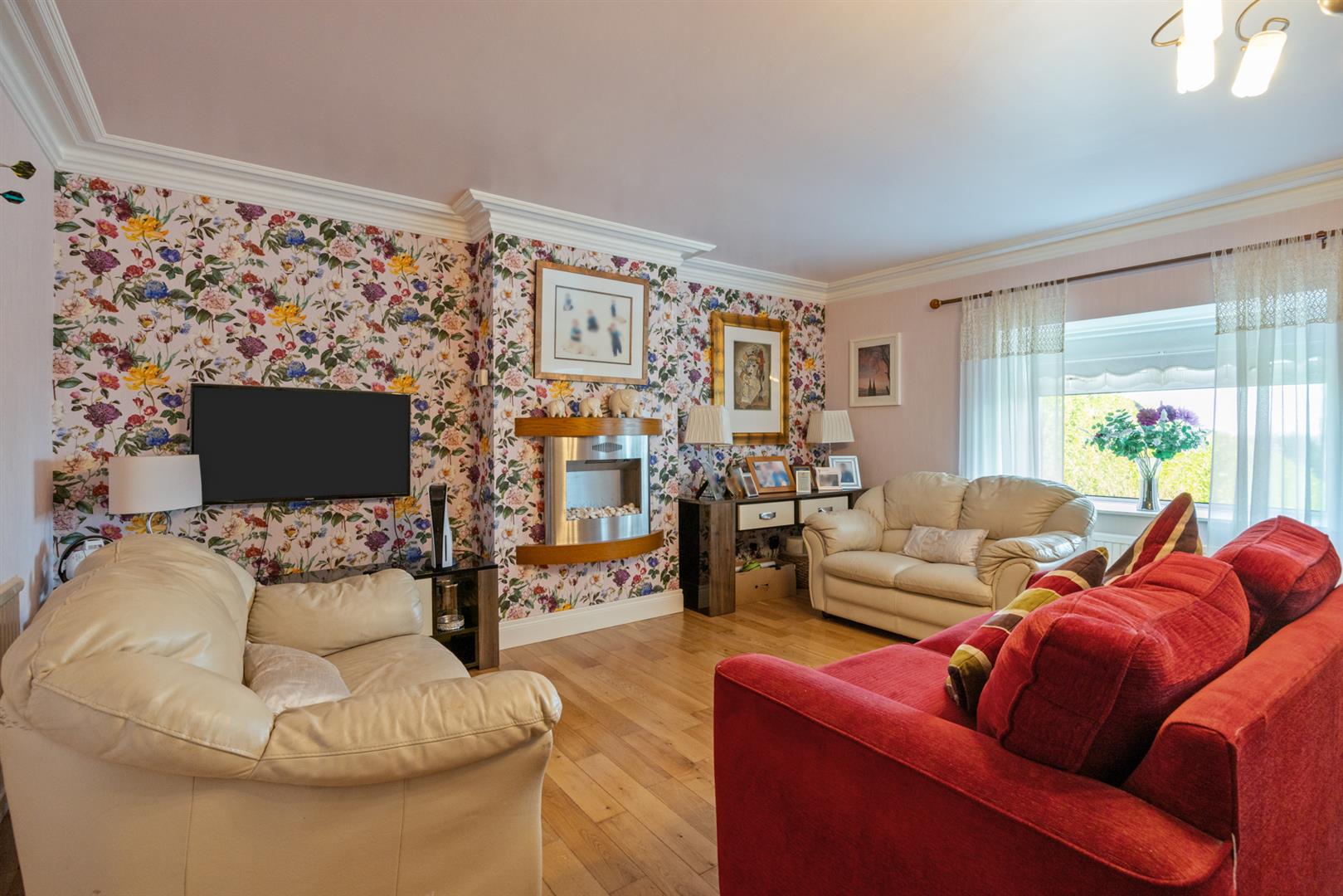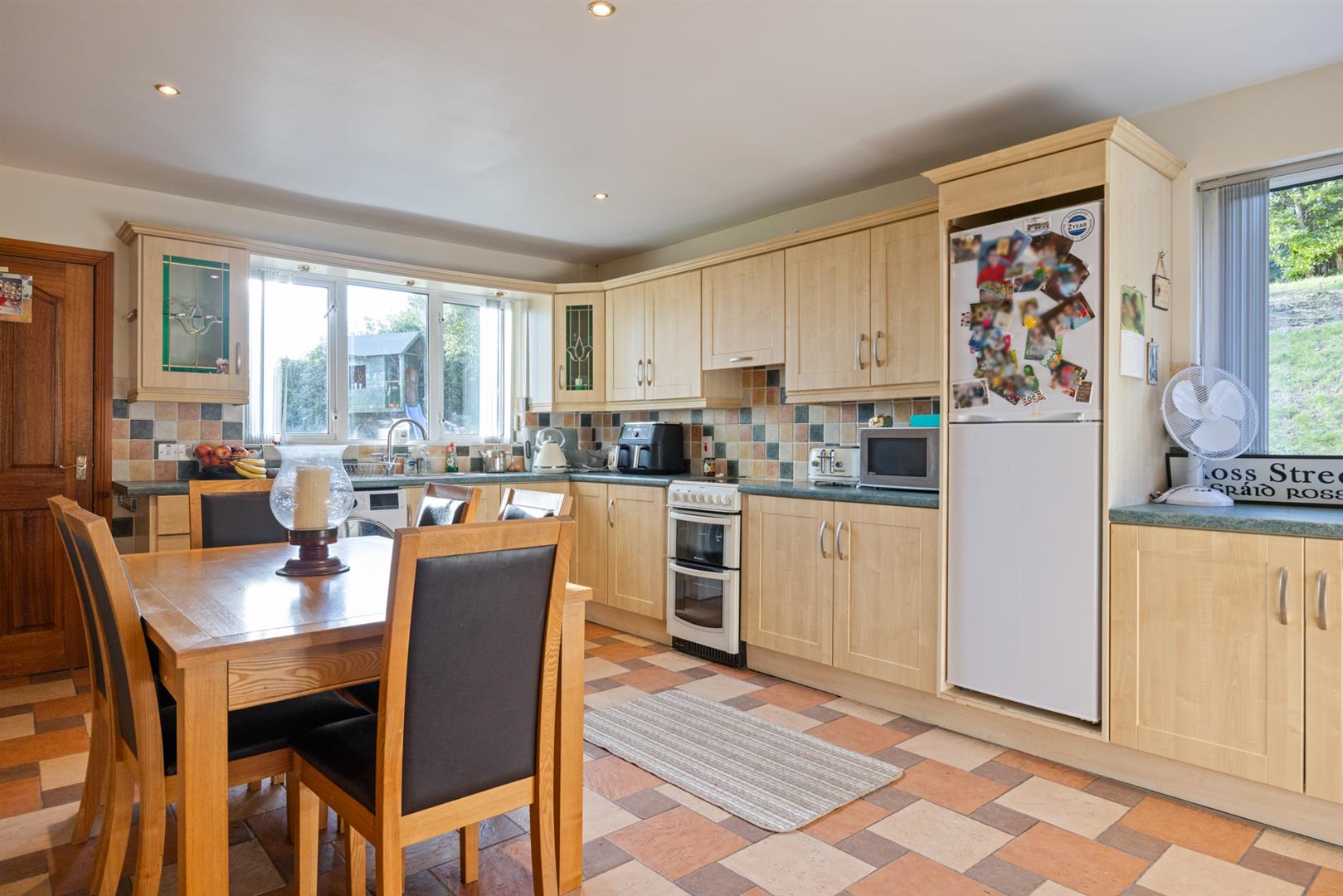 On the ground floor, there is an impressive, bright, and airy living room that has an attractive fireplace with a wood-burning stove and a feature picture window that takes advantage of the elevated views. There is an additional family room that is substantial in size and has a beautiful solid wooden floor and provides perfect entertaining space; there is also a luxury fitted kitchen that is open plan to a large family dining area, and the property has access to a handy downstairs w.c. and separate utility room.