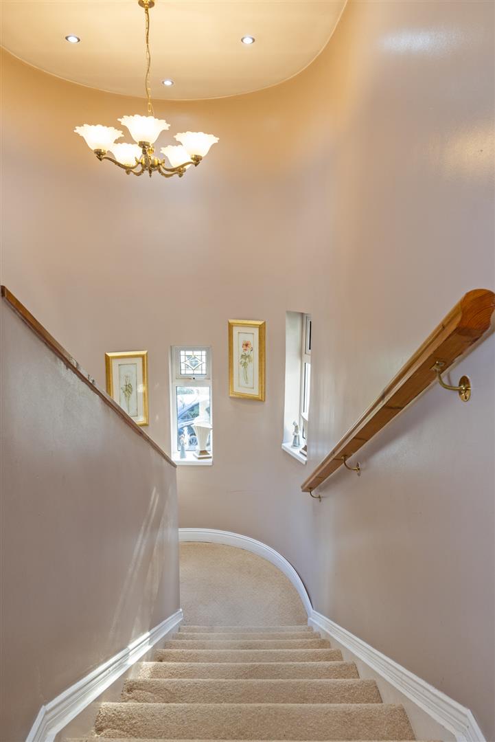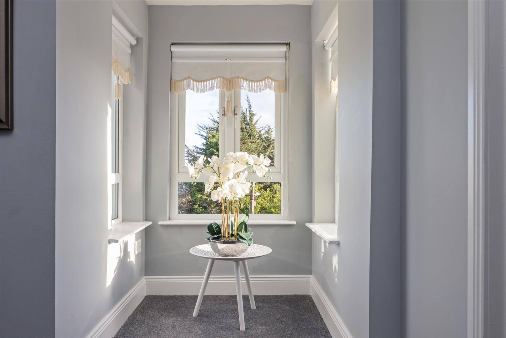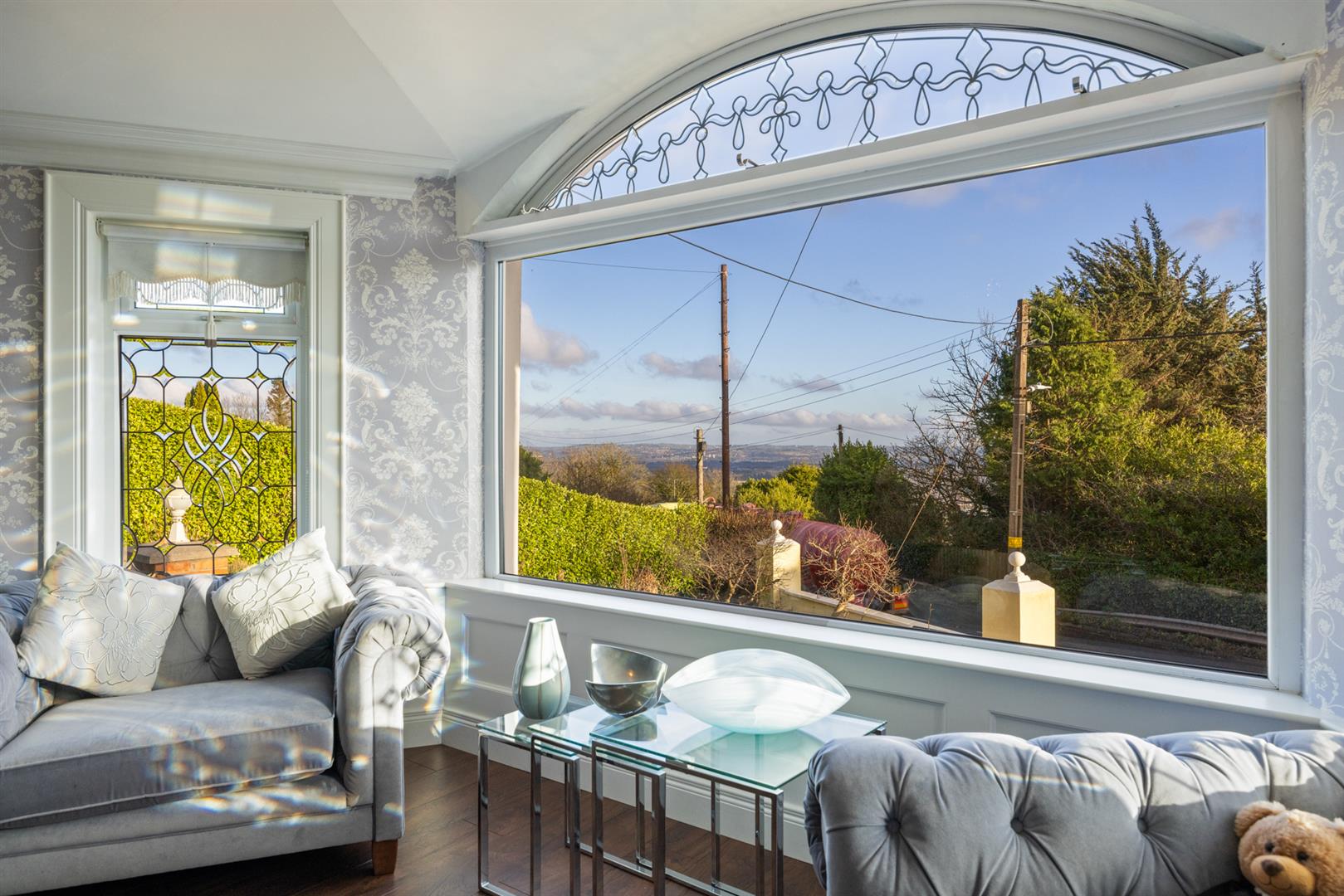 Two large separate reception rooms to include a most impressive living room that has an attractive fireplace with a wood-burning stove and a feature picture window that takes advantage of elevated vie