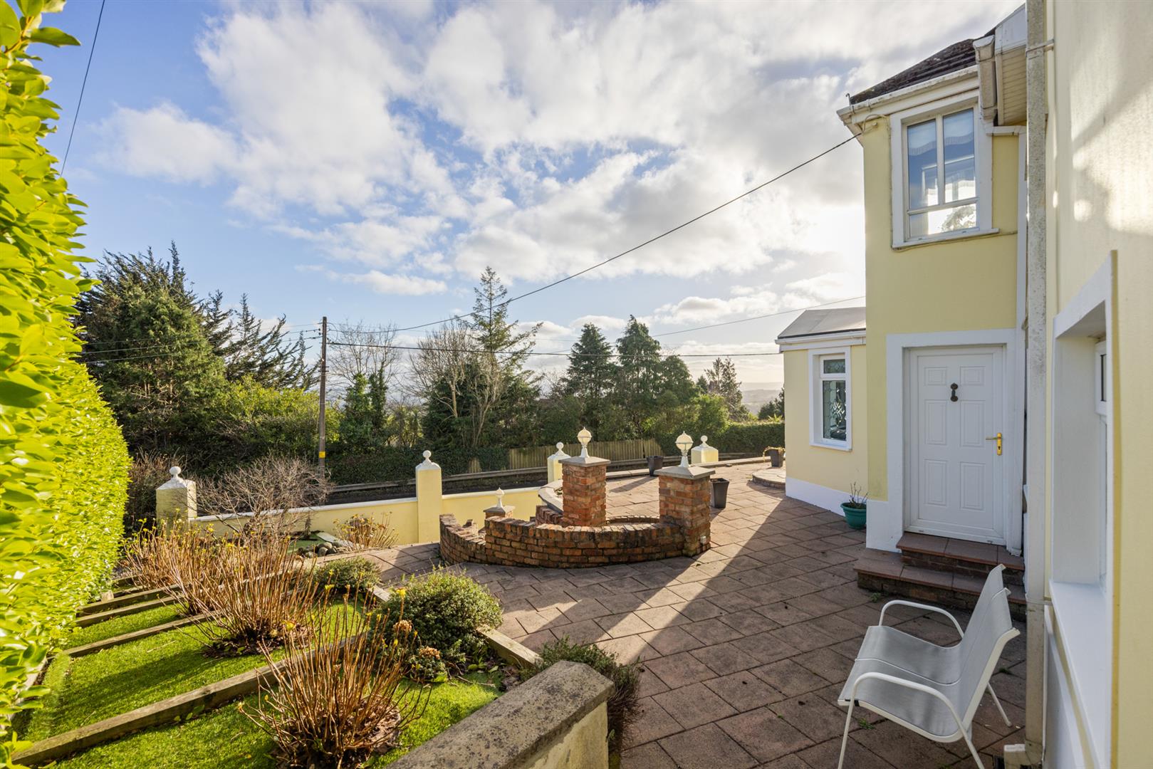 Front garden, paved sitting area to the front benefiting from magnificent elevated views. Extensive rear garden with mature trees.