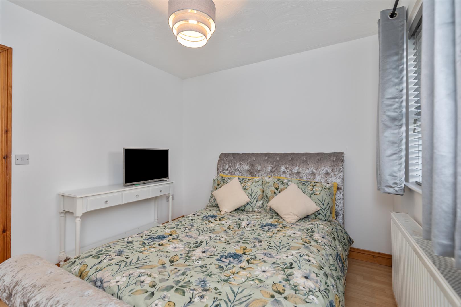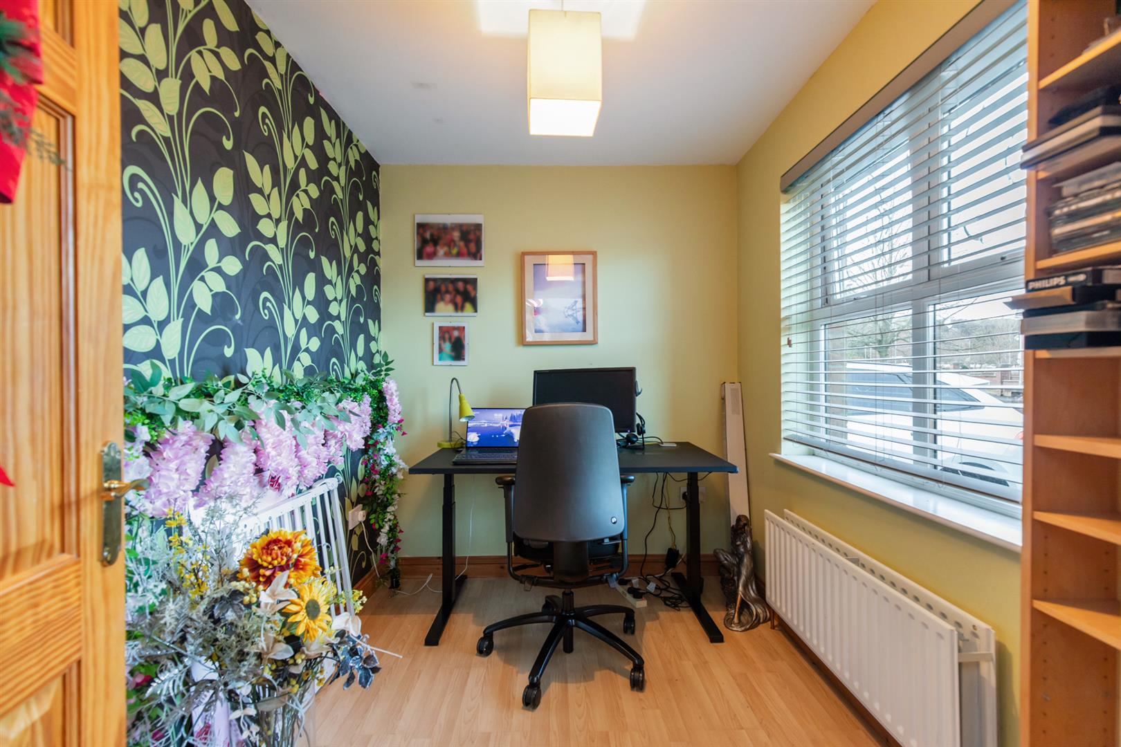 Wood laminate floor, double panelled radiator.