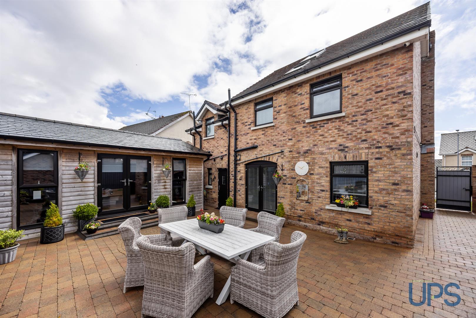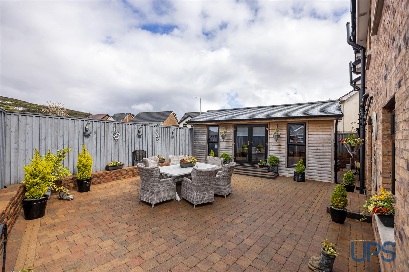 A superb outdoor garden room/entertaining space with the "wow factor", complete with light, power, and heating, creating an impressive space for entertaining.