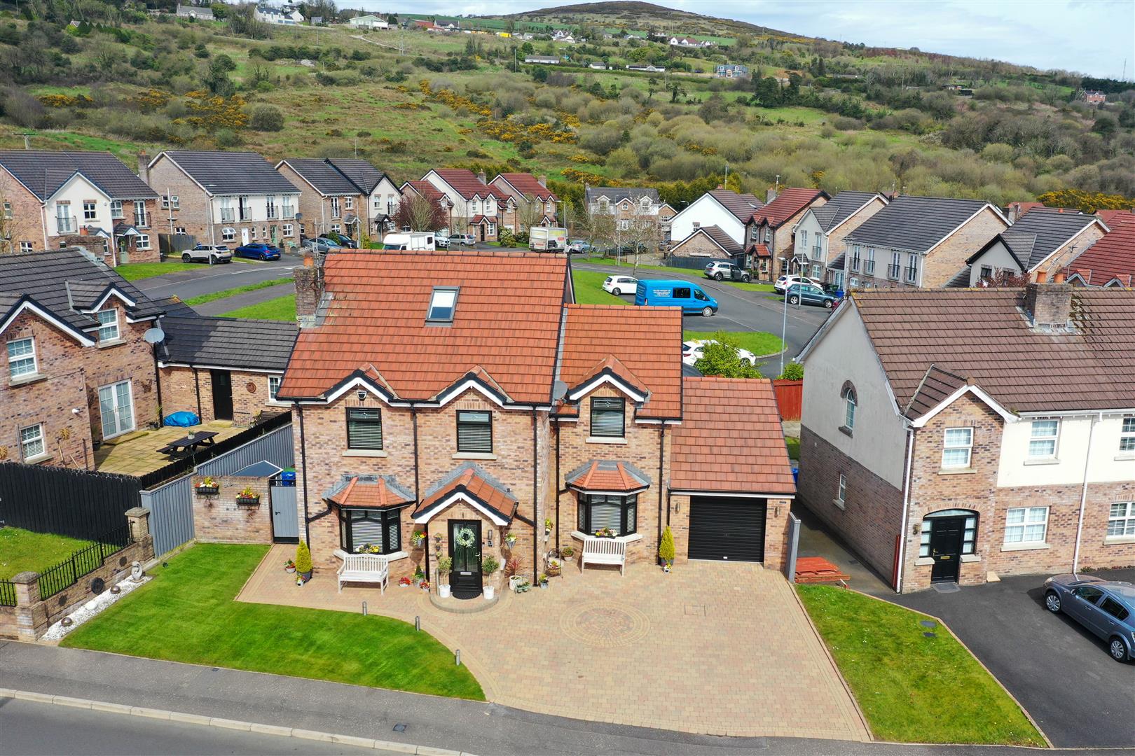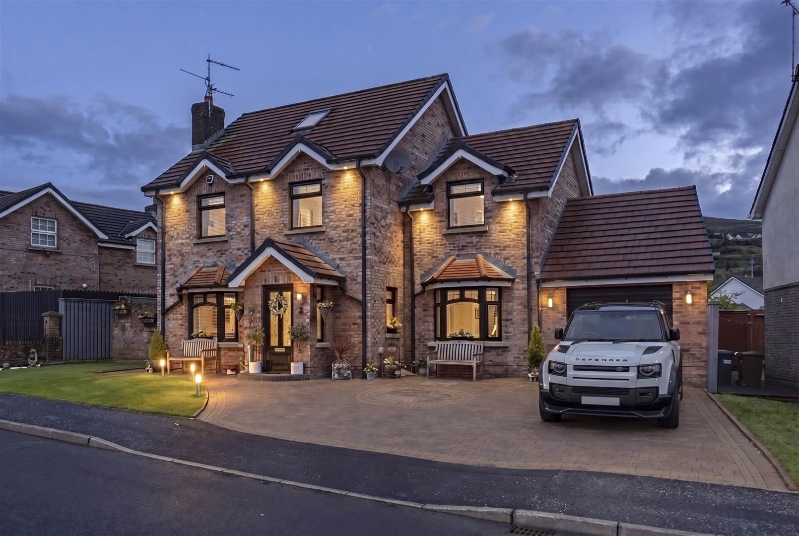 Externally, the property enjoys ample off-street parking with a beautifully finished brick paviour driveway and pathways. The rear garden is a low-maintenance, well-designed space with attractive brick paving, offering lovely views towards Black Mountain. A superb outdoor games room/bar provides an impressive and versatile entertaining area.
