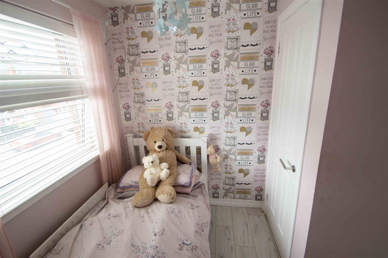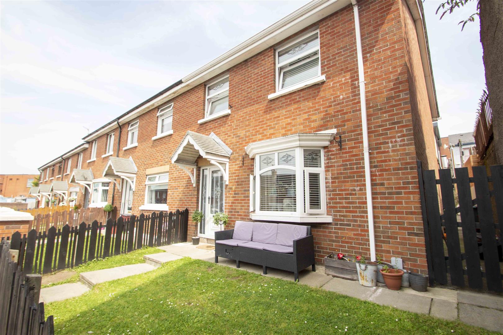An impressive, upgraded end town house magnificently positioned in the heart of the popular Gaeltacht Quarter and enjoys proximity to a multitude of nearby amenities within walking distance to include lots of shops, cafes and schooling as well as transport links to include the Glider service and accessibility to the wider motorway network and Belfast city Centre, in addition the Royal Victoria Hospital and St Mary's University College area a short stroll away, making this special home a star purchase ! Three good sized bedrooms. Master bedroom with built-in contemporary slide robes and luxury ensuite shower room. Bright and airy living room with bay window and attractive fireplace with gas fire. Separate dining room with beautiful cornicing and centre rose. Luxury fitted kitchen with range of built-in appliances and feature Upvc double glazed doors to garden. White bathroom suite on first floor with separate shower cubicle and decorative tiling. Upvc double glazing. Gas central heating. Well maintained front and rear gardens. Welcoming and spacious entrance hall. A superior, modern home with outstanding doorstep convenience to include ease of access to leisure facilities, Boucher road with its many popular retail parks and restaurants to name a few, and we strongly recommend viewing this outstanding home.