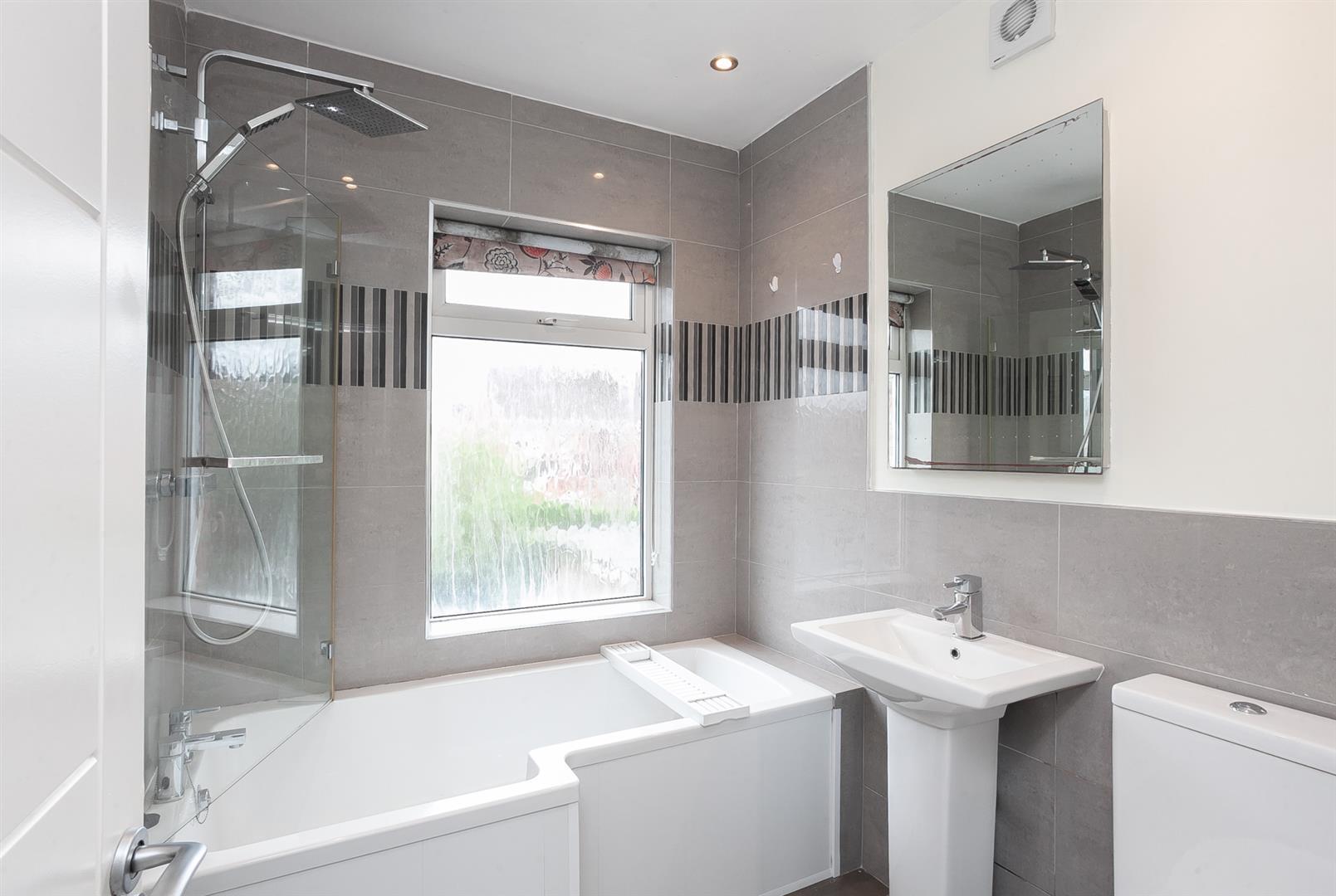 On the upper floors, the home offers three generous bedrooms, including a superb second-floor master bedroom, alongside two additional well-sized bedrooms. The fully tiled white bathroom suite provides a clean and contemporary space.