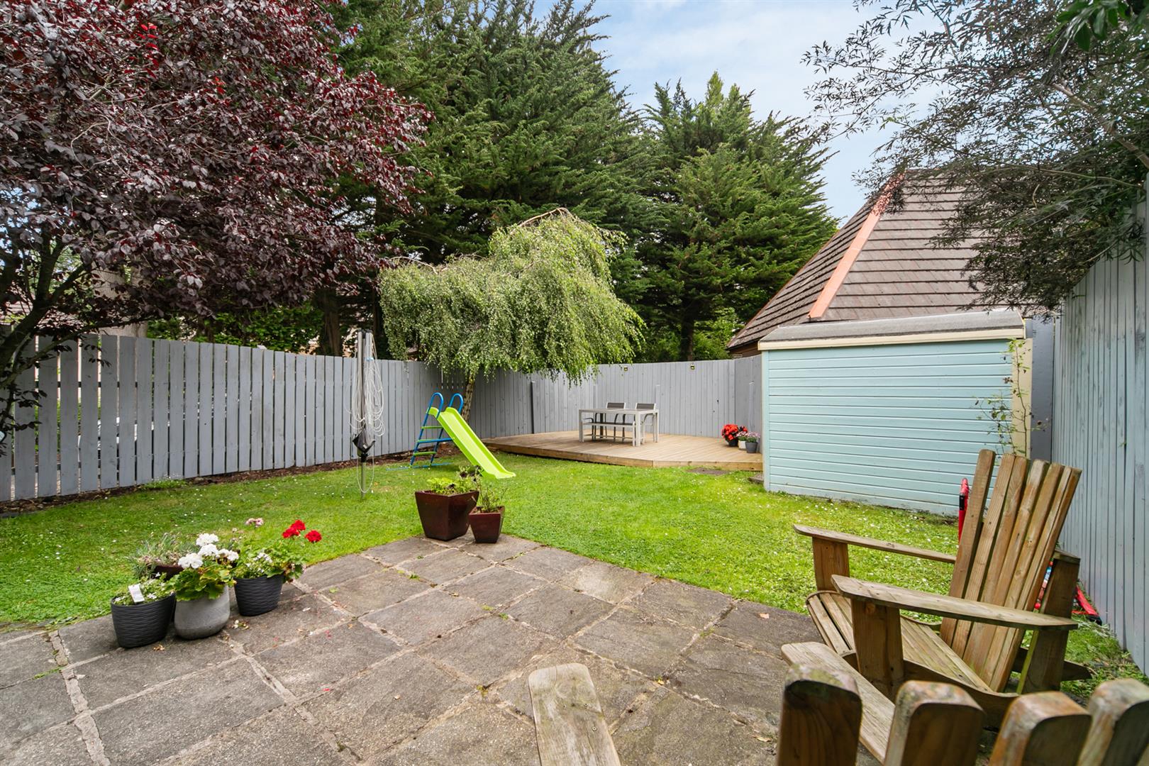 Enclosed Rear Garden With Lawn And Timber Decking Area