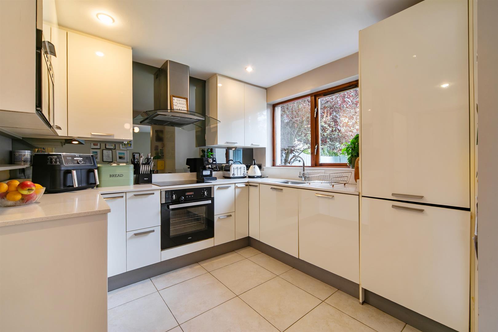 Luxury Kitchen With A Range Of Integrated Appliances & Porcelain Tiled Flooring