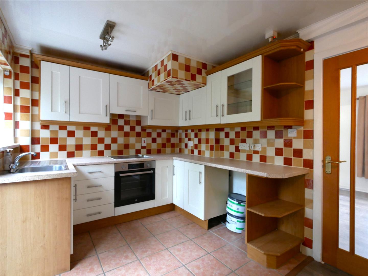 Range of high and low level units, single drainer sink unit with mixer taps, formica work surfaces, part tiled walls, 4 ring hob and under oven, extractor fan, plumbed for washing machine, tiled floor, open to the dining area.