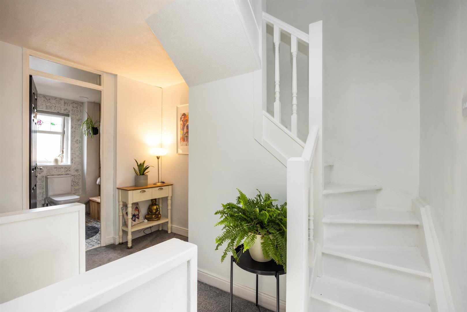Built in cupboard, permanent staircase to roofspace.