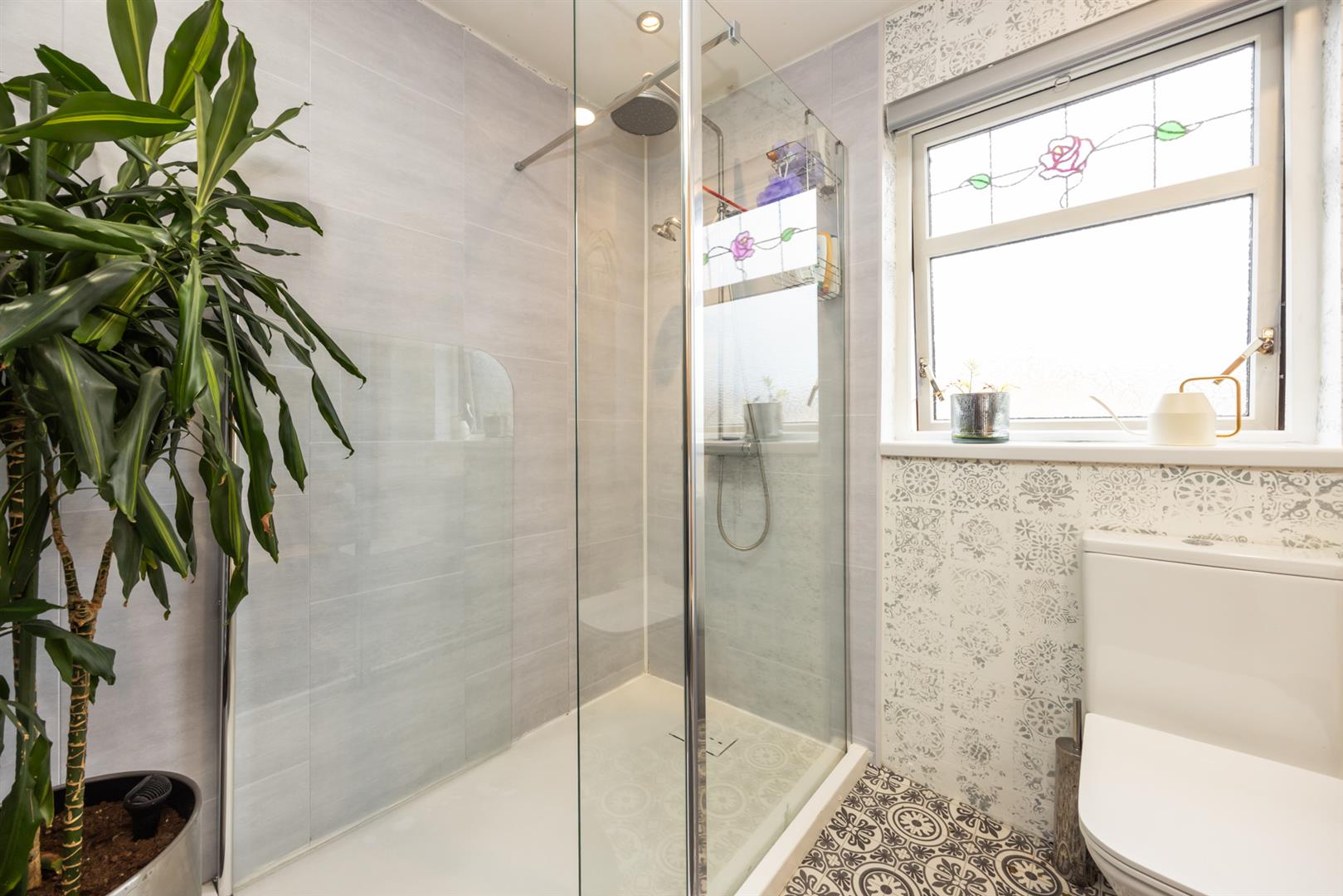 The first floor offers three well-proportioned bedrooms, two with built-in robes and one with wood laminate flooring. The modern shower room comprises a white suite with a large walk-in shower cubicle and built-in rainfall shower. There is also a vanity unit, chrome feature radiator, part wood-panelled wall cladding, and recessed spotlighting. Access to the fourth bedroom is via a permanent staircase, which also includes a walk-in shower cubicle with electric shower and fully tiled walls.