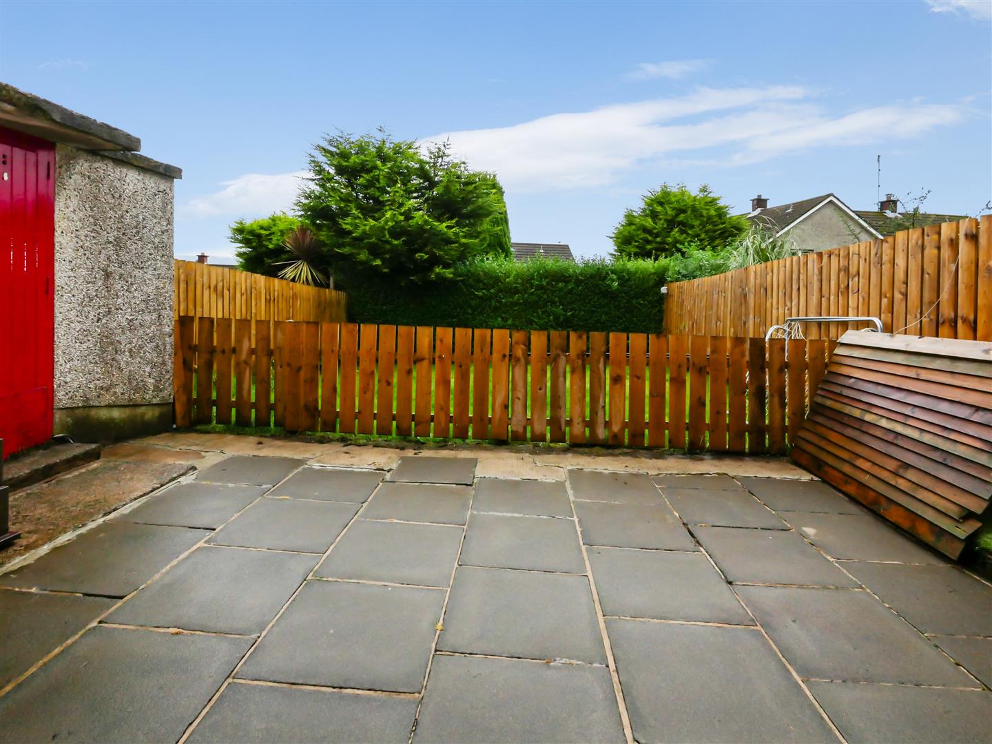 Enclosed rear gardens with flagged patio area, Additional gardens in lawn. Outhouse with good storage.