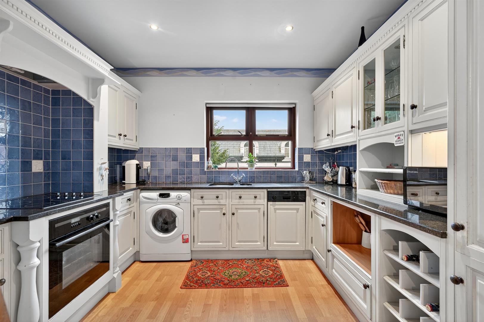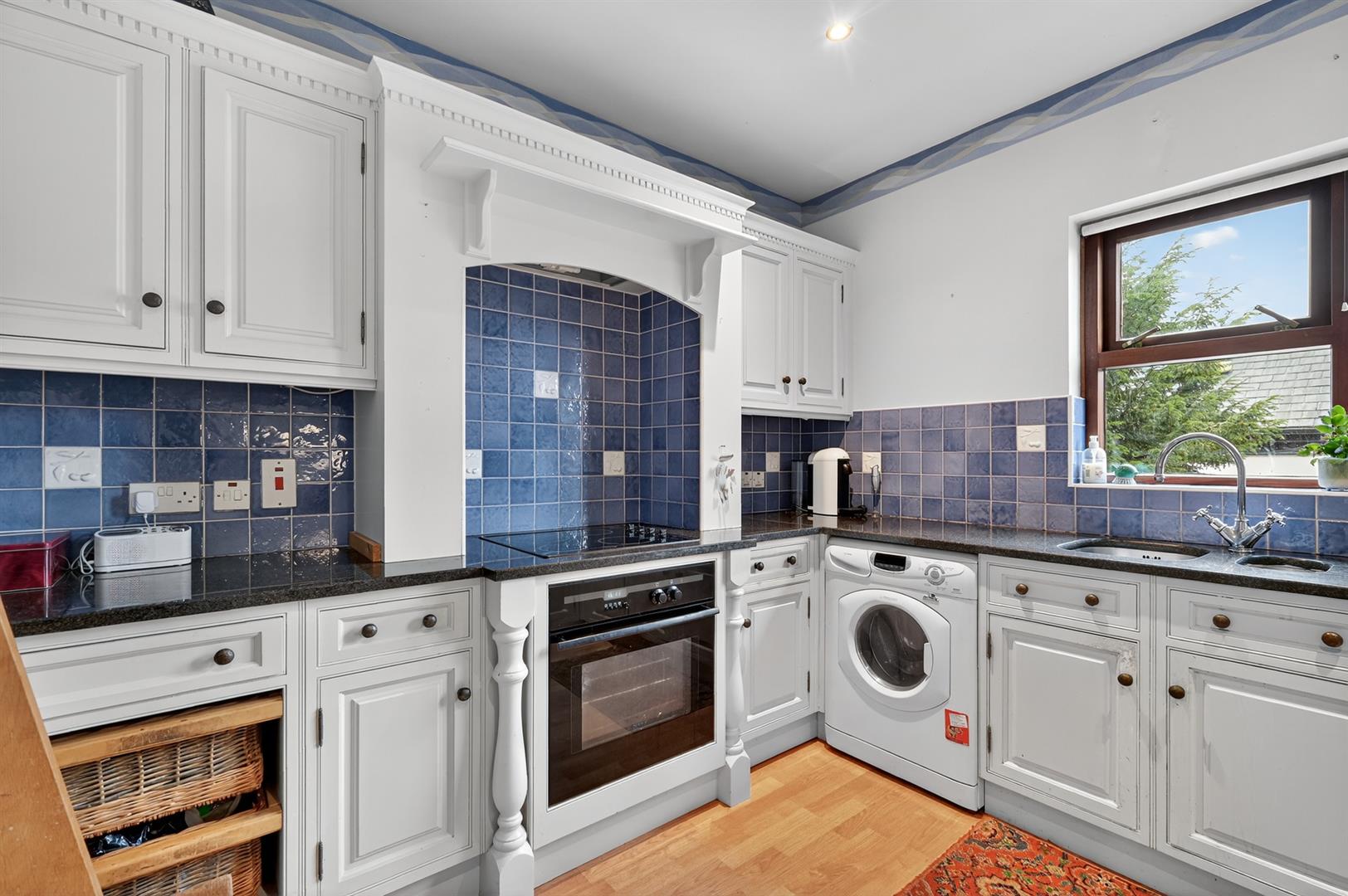 Range of high and low level units, integrated oven with hob and extractor fan, plumbed for washing machine, integrated dishwasher, part tiled walls, integrated fridge / freezer, 1.5 stainless steel sink unit with mixer tap.