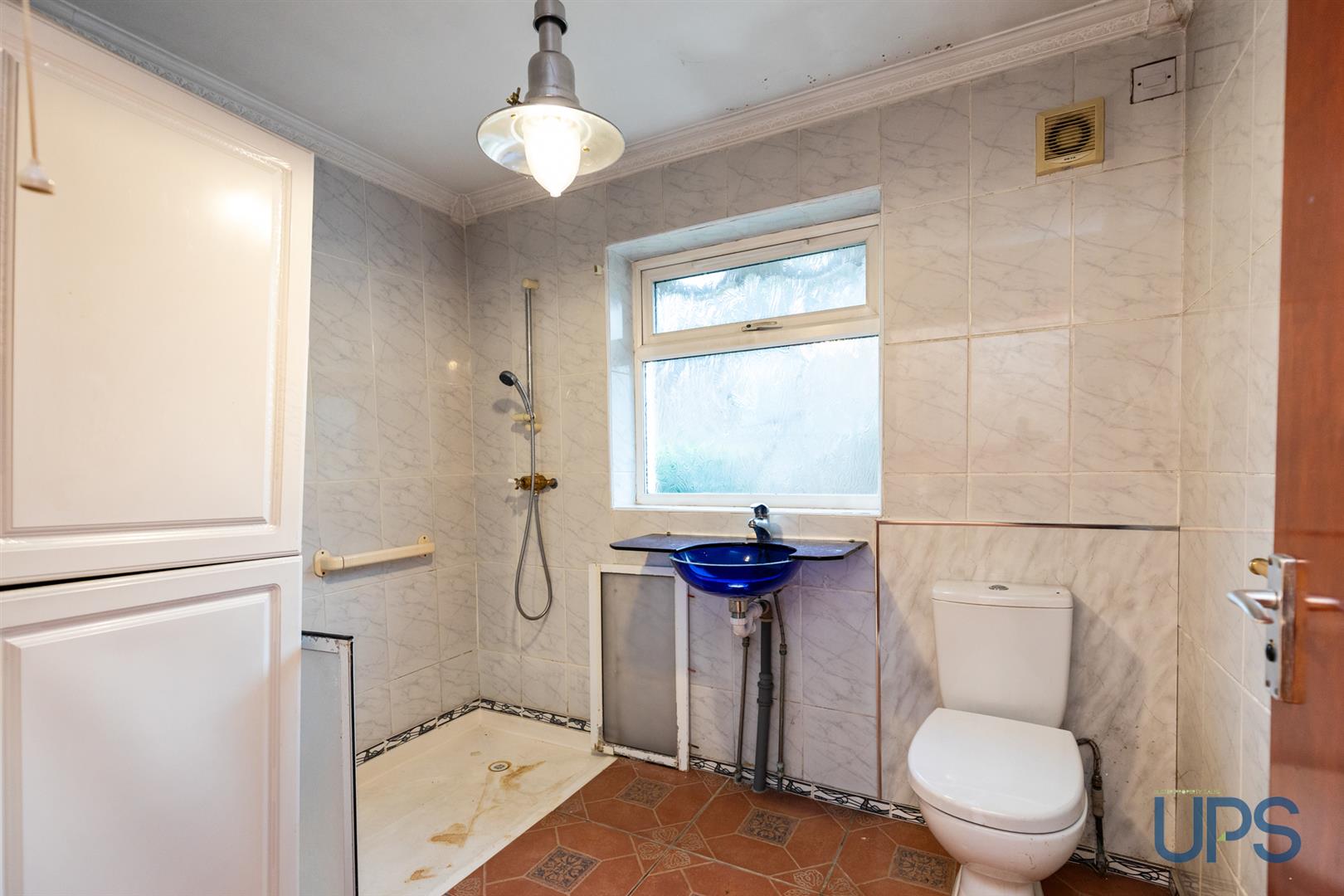 Shower facility, low flush w.c., wash hand basin, tiled walls and floor, extractor fan.
