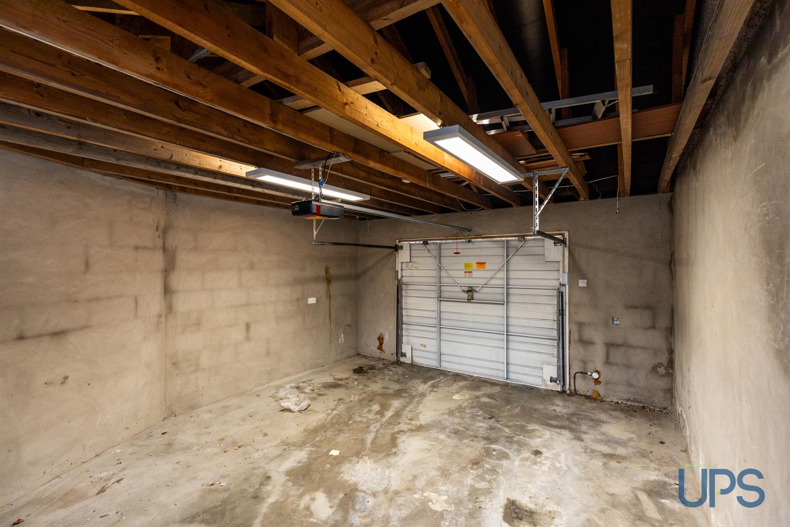 Off-road car parking leading to an attached garage with an automated electric door, lighting, power, and a pedestrian door.