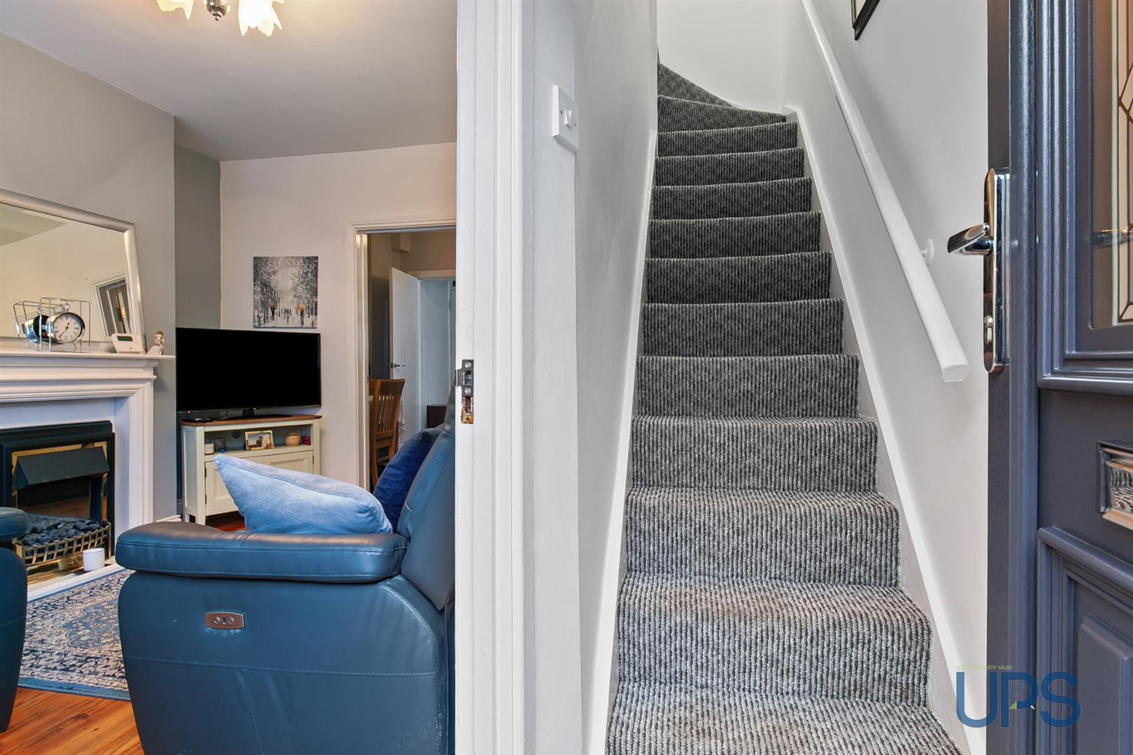 An extended mid-terrace home boasting a generously sized, privately enclosed rear garden that benefits from a bright, sunny southerly aspect.