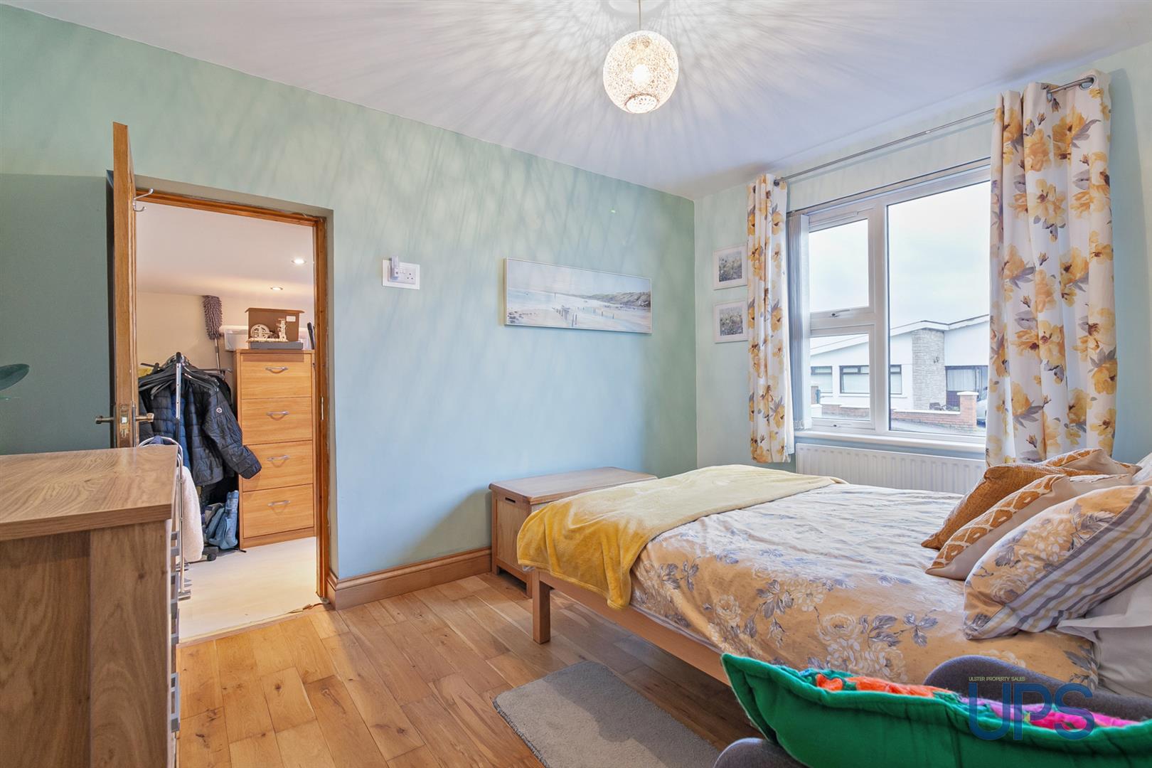 Solid wooden floor, walk-in dressing room.