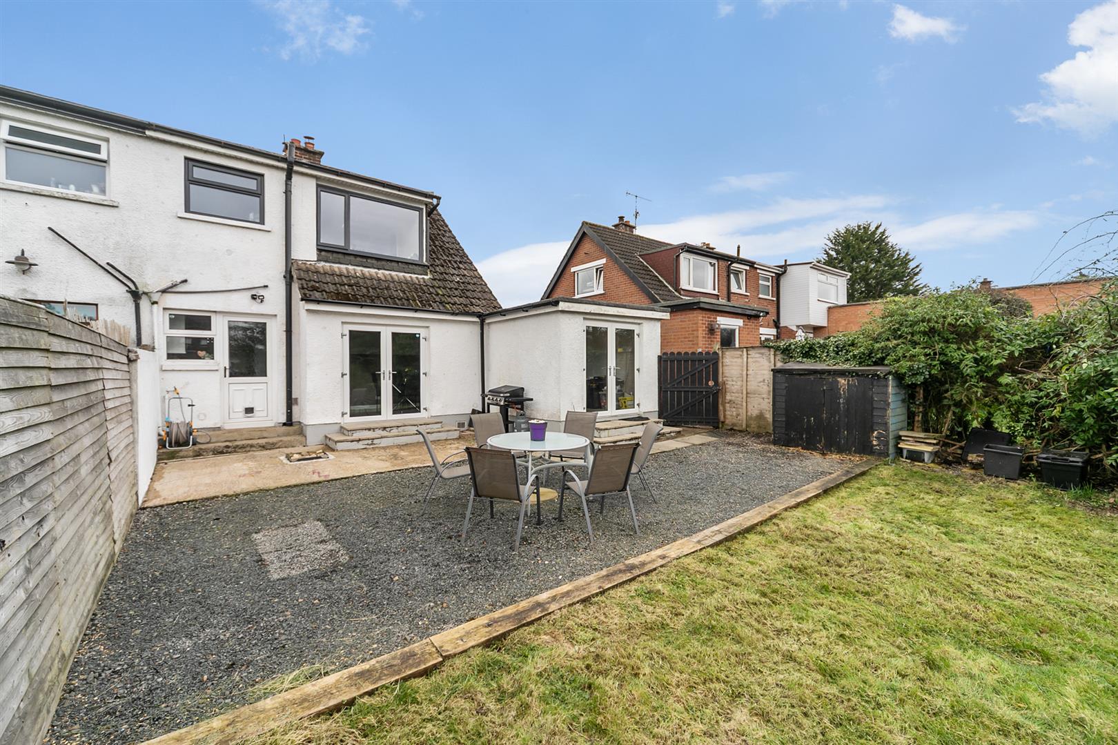 Patio area to rear leading to a fantastic enclosed rear garden laid in lawn, bordered by timber fencing.
