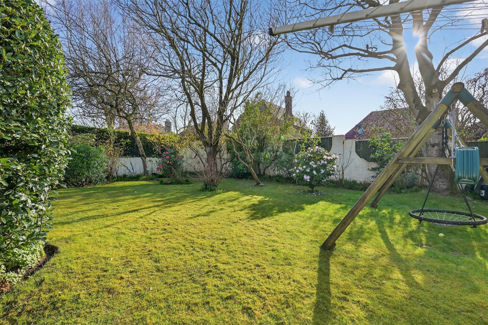 Beautiful south-facing garden in lawn surrounded by flowering shrubs and established trees. Gated driveway to front and pedestrian gate access.