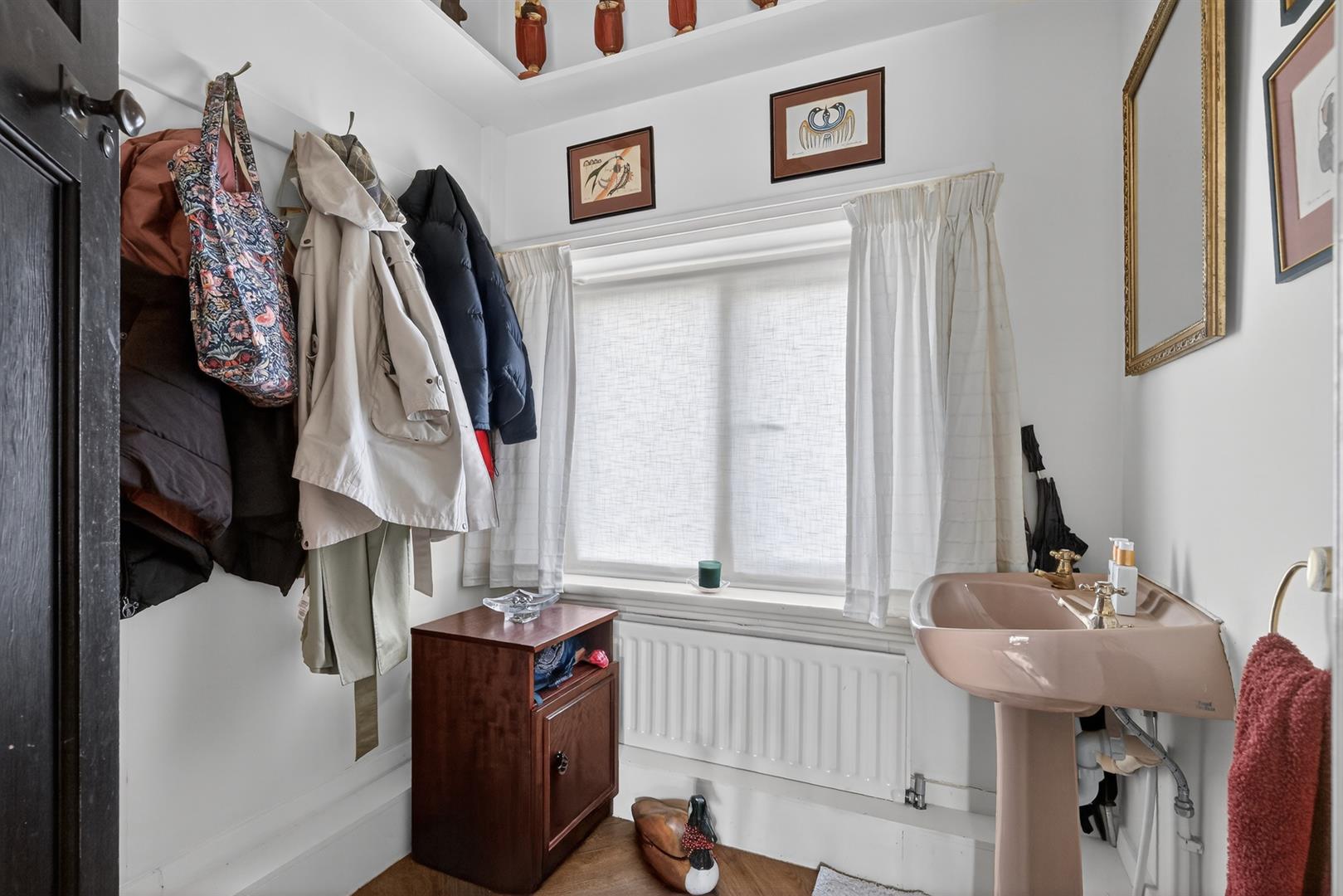 Hardwood front door. Stain glassed inner door. Tiled flooring.