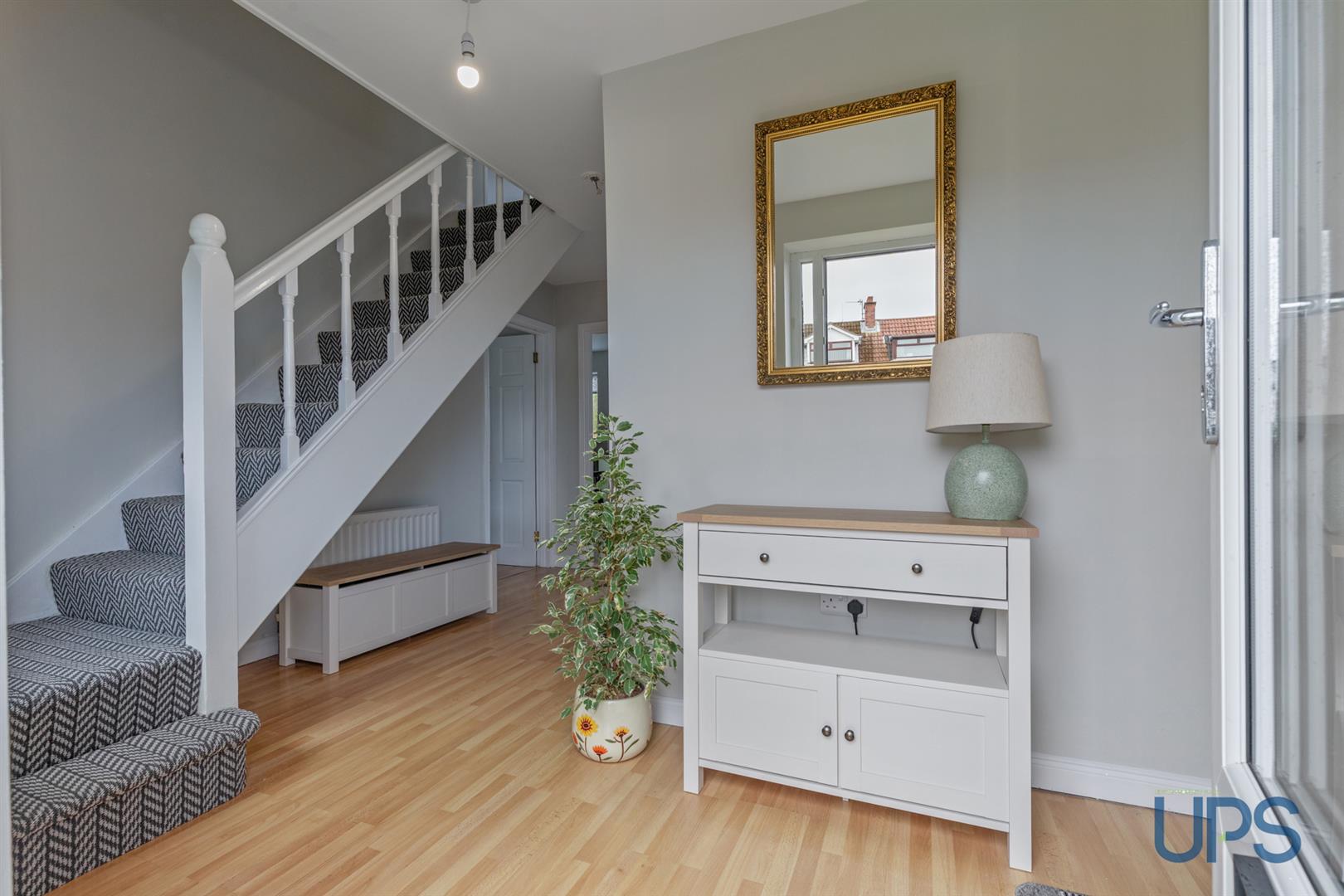 uPVC double-glazed front door to a most spacious and welcoming entrance hall, laminated wood-effect floor, and cornicing.