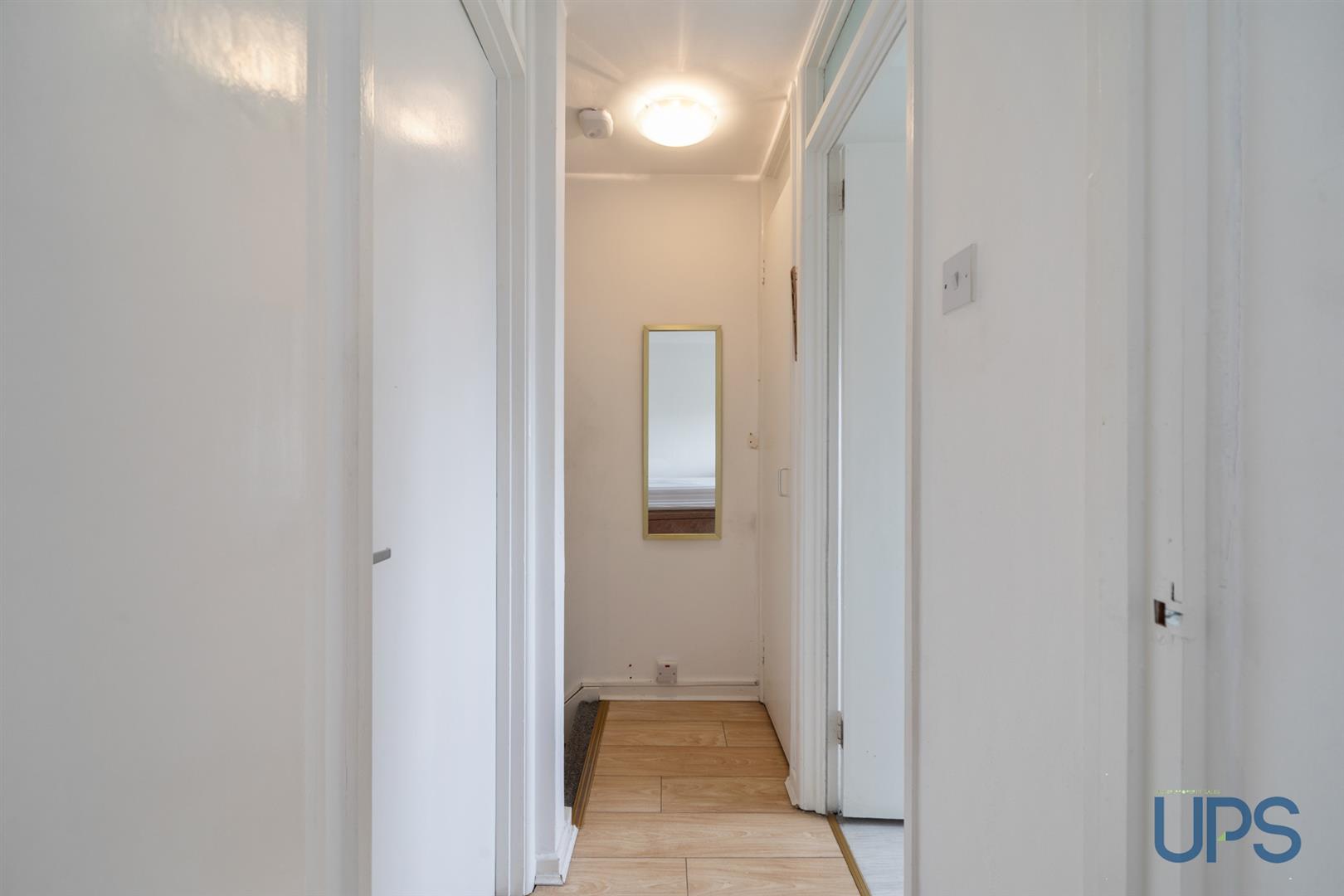 Wooden effect stripped floor. Access to;