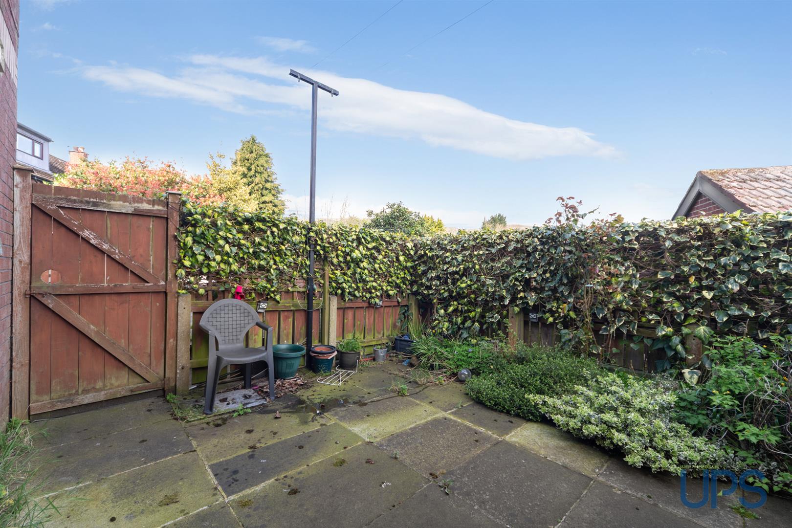 Privately enclosed, low-maintenance flagged rear garden.