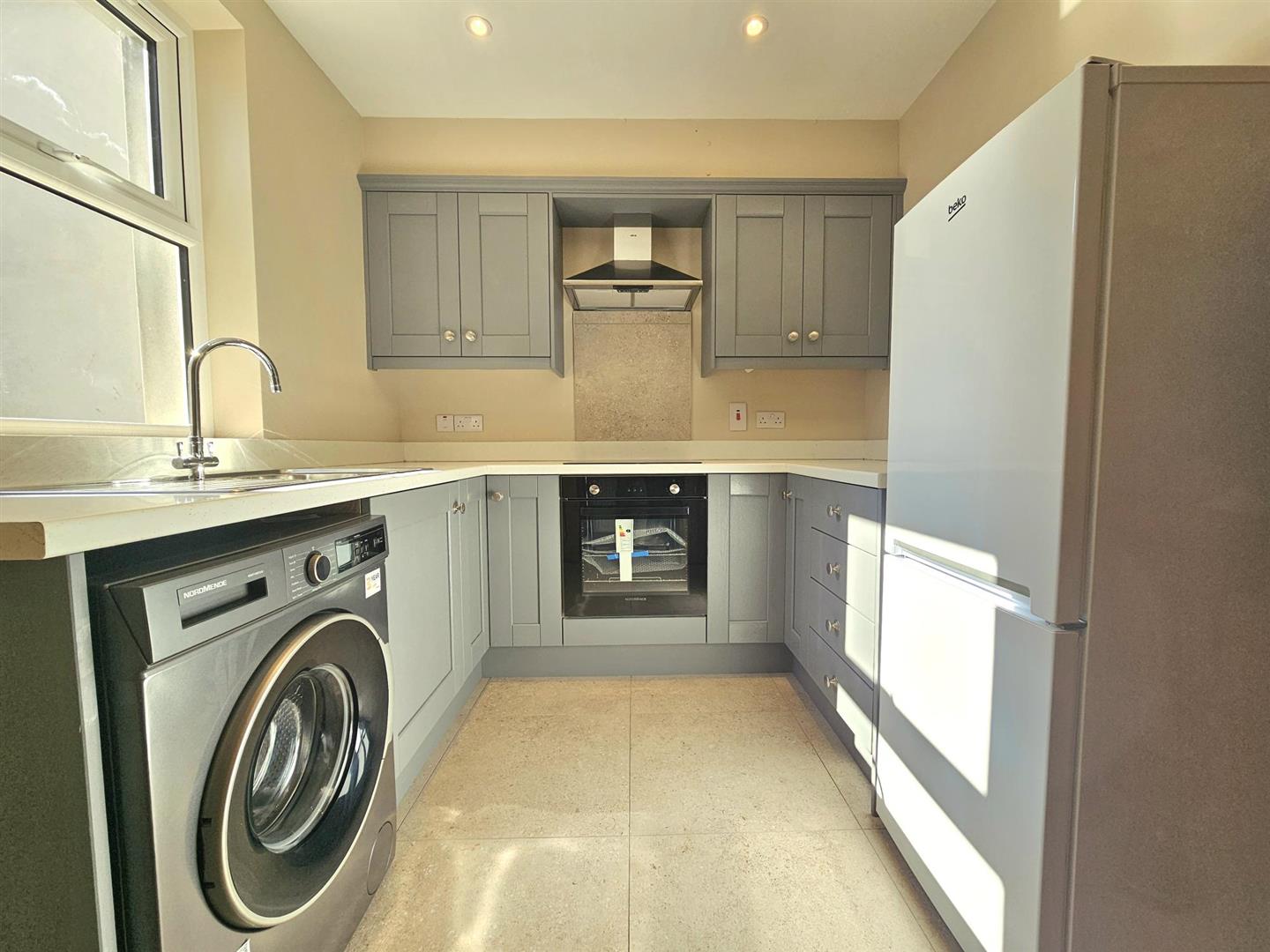 The modern kitchen is fitted with both high and low units and comes fully equipped with appliances, providing a practical and ready-to-use space. The property also benefits from a sleek walk-in shower suite and two well-proportioned double bedrooms, both featuring built-in storage.