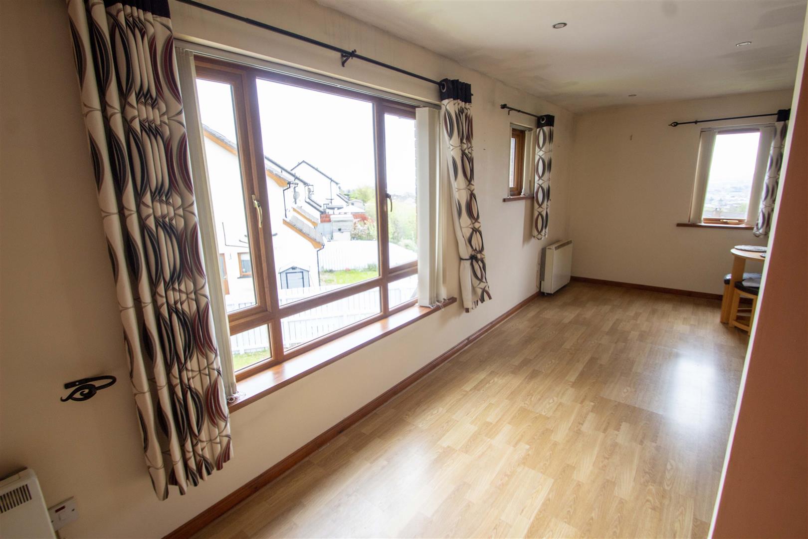 Living room open plan to kitchen / dining area.