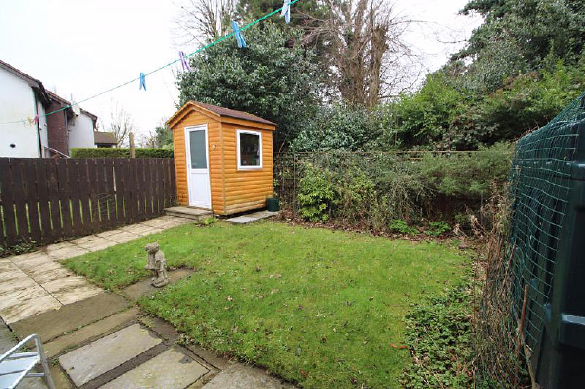 Driveway parking, front gardens laid in lawns, fully enclosed rear gardens laid in lawns, oil fired boiler, plastic oil storage tank.