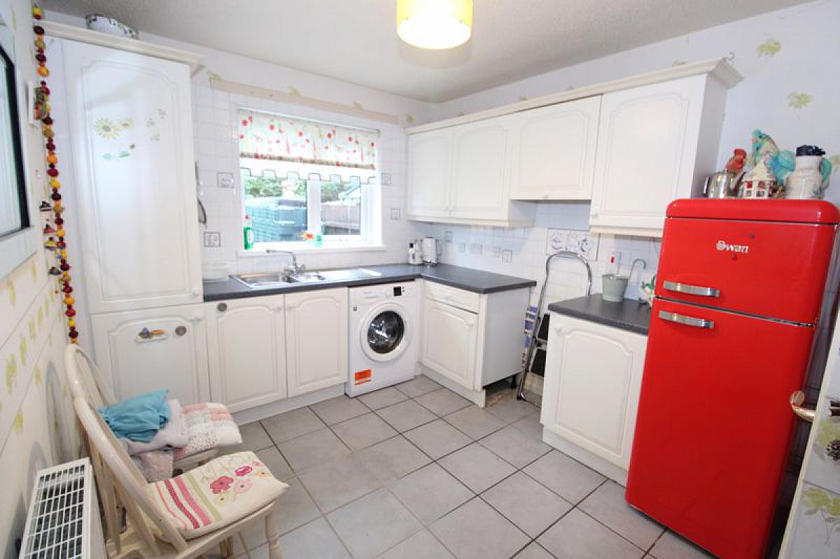 Extensive range of high and low level units with complementary worksurfaces, 1 1/2 bowl stainless steel sink unit and mixer tap, cooker space, fridge/freezer space, ceramic tiled floor, built-in storage cupboard, double panel radiator.